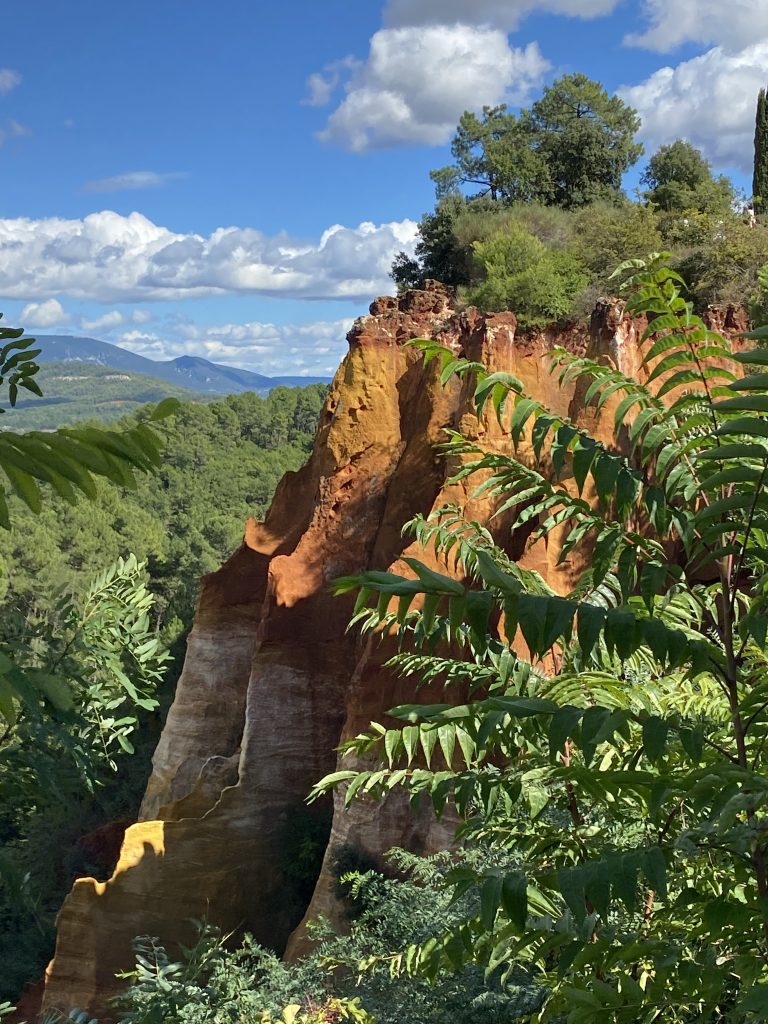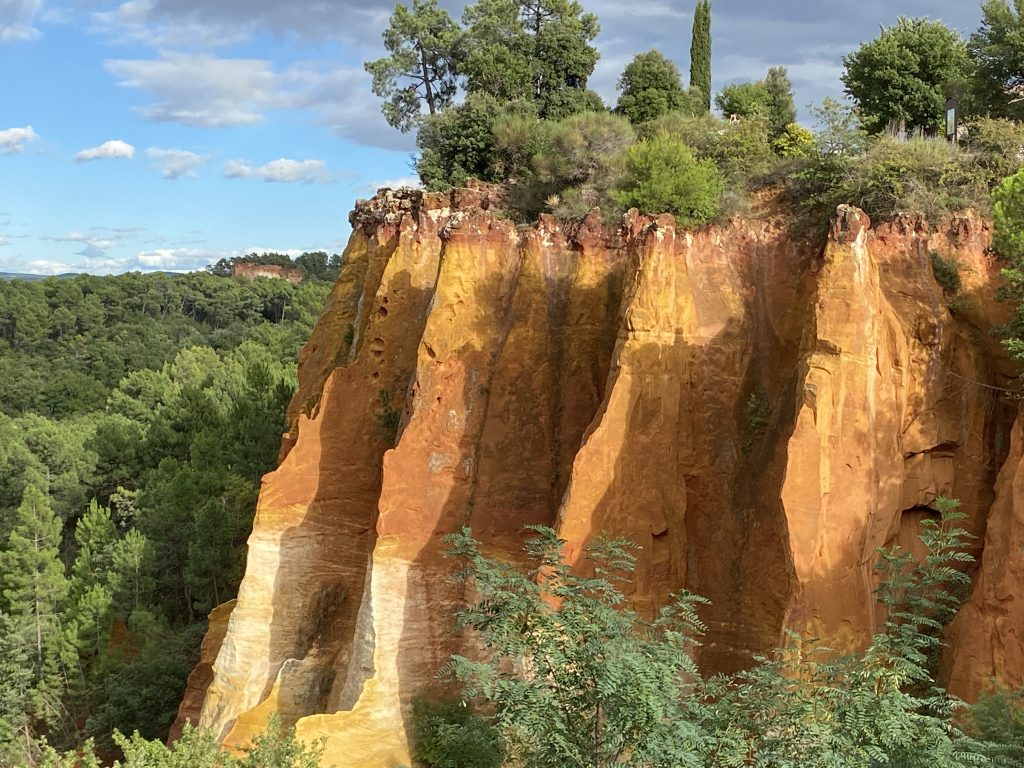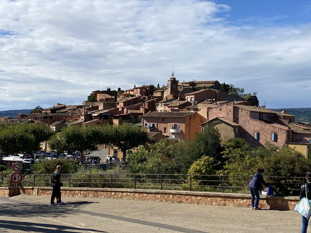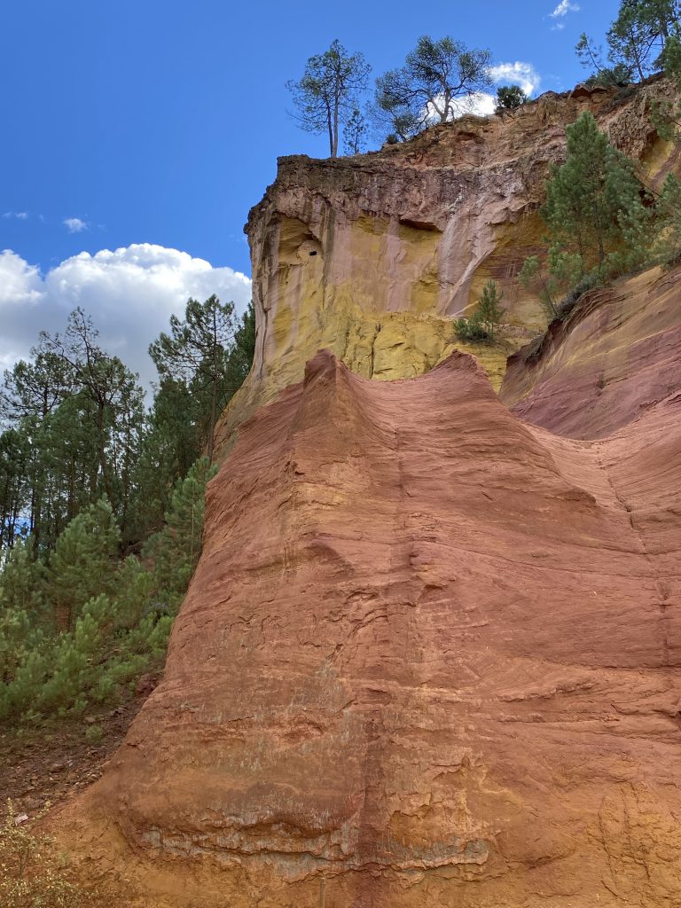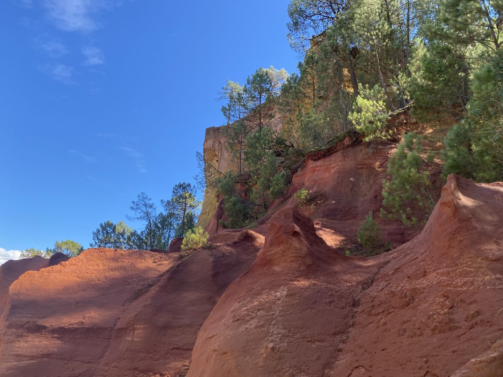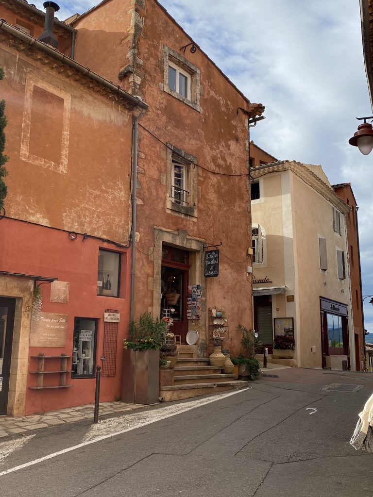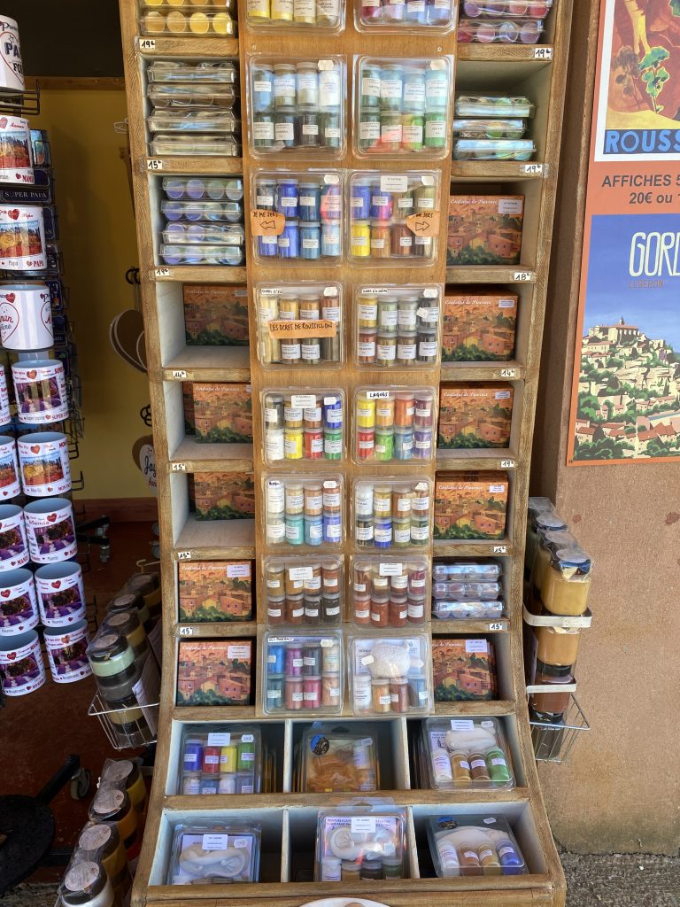 Die Zeit am Wasser ist für diese Reise vorbei. Schade, aber es gibt noch soviel andere schöne Dinge zu sehen. Zum Beispiel die Ockerberge von Roussillion und dieser Ort wie auch das Umland lohnen sich für eine Reise. Die Farben der Felsen sind so auffallend in rot, gelb, weiß und ocker. Das ist wunderschön und so ungewöhnlich, wenn man auf roter oder gelber Erde langspaziert. Auch der Ort selbst ist malerisch und die Häuschen sind in den selben unterschiedlichen Farben gestaltet wie die Erdtöne um sie herum. Es gibt kleine Läden, in denen man die Farben kaufen kann. Sie werden zum Malen genutzt und auch bei den Töpfern sind sie beliebt. Darüber könnte Petra aber mehr schreiben, denn sie hat sie beim Töpfern schon verwendet. Natürlich konnte sie auch nicht an diesen Farbpigmenten einfach so vorbei gehen und hat sich ein Set davon mitgenommen. Was mir her in diesem Örtchen gut gefallen hat, war das es wenig Kitsch zu kaufen gab, hier waren es eher besondere und zum Teil hochwertige Dinge, die aus der Gegend kommen. Honig, alles mögliche aus Lavendel, natürlich Farben und wer das nötige Kleingeld hatte, konnte hier auch Kunst in Form von Gemälden, Bildhauerkunst und Töpfersachen kaufen.