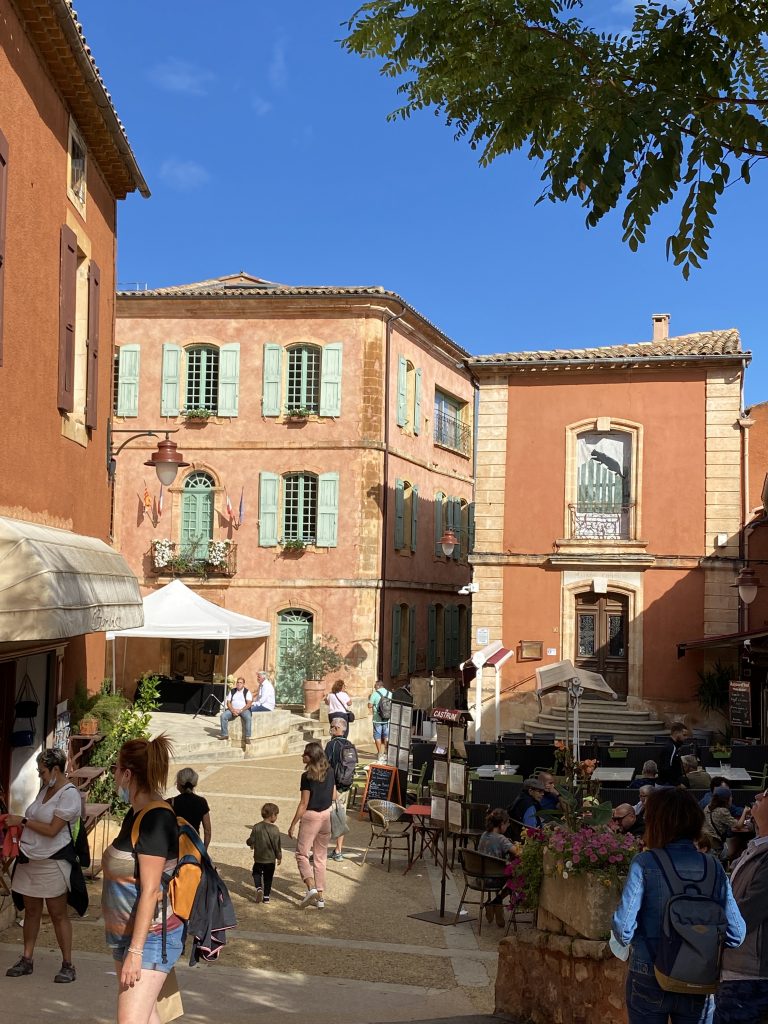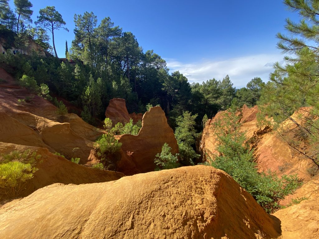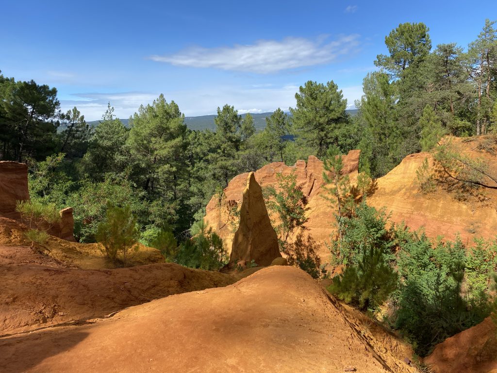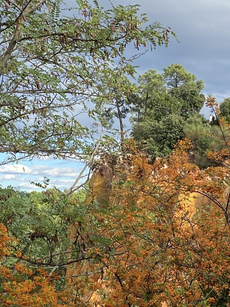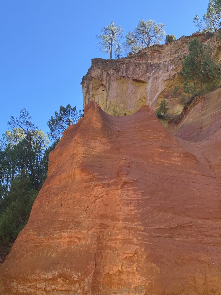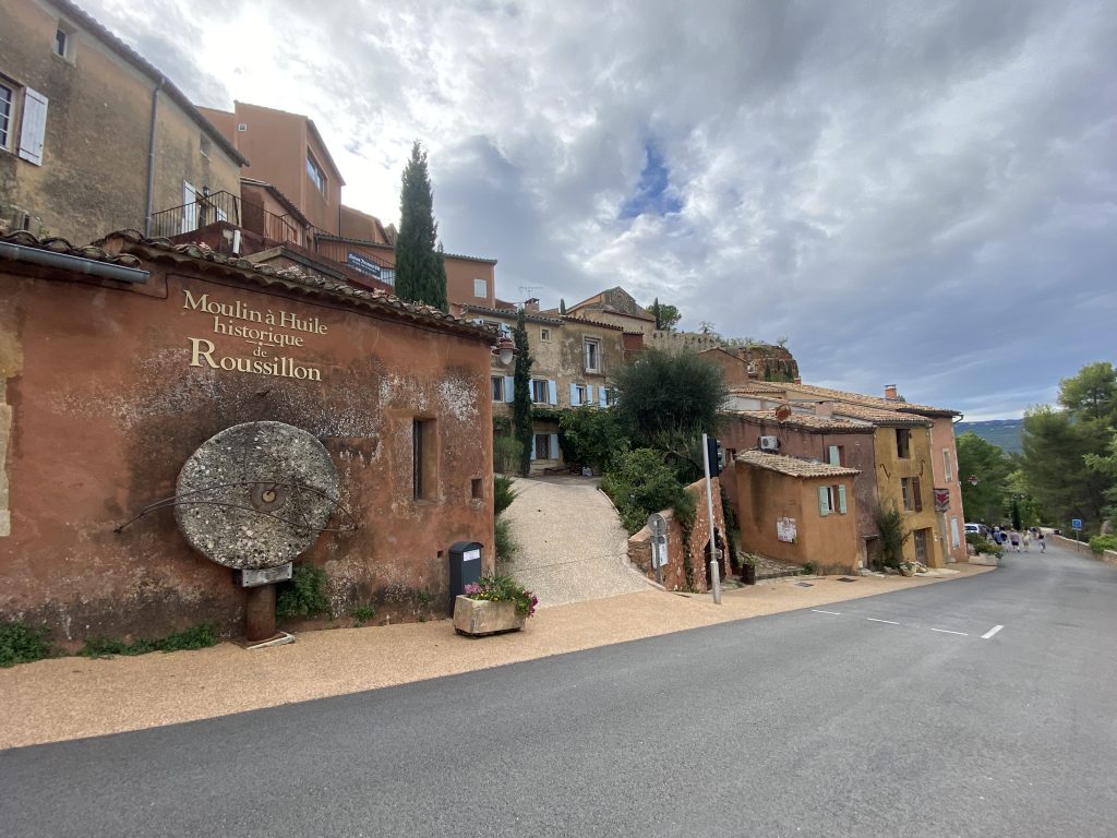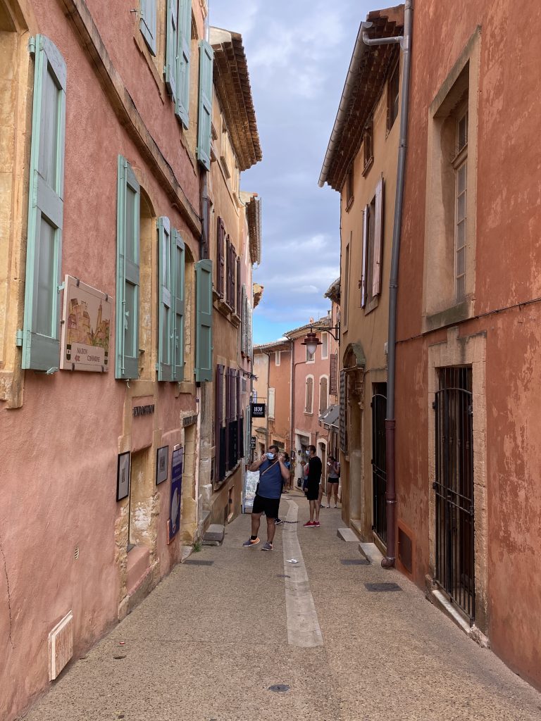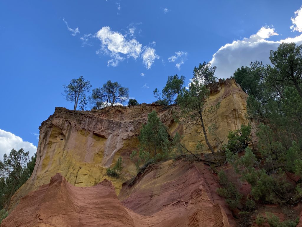 Die Zeit am Wasser ist für diese Reise vorbei. Schade, aber es gibt noch soviel andere schöne Dinge zu sehen. Zum Beispiel die Ockerberge von Roussillion und dieser Ort wie auch das Umland lohnen sich für eine Reise. Die Farben der Felsen sind so auffallend in rot, gelb, weiß und ocker. Das ist wunderschön und so ungewöhnlich, wenn man auf roter oder gelber Erde langspaziert. Auch der Ort selbst ist malerisch und die Häuschen sind in den selben unterschiedlichen Farben gestaltet wie die Erdtöne um sie herum. Es gibt kleine Läden, in denen man die Farben kaufen kann. Sie werden zum Malen genutzt und auch bei den Töpfern sind sie beliebt. Darüber könnte Petra aber mehr schreiben, denn sie hat sie beim Töpfern schon verwendet. Natürlich konnte sie auch nicht an diesen Farbpigmenten einfach so vorbei gehen und hat sich ein Set davon mitgenommen. Was mir her in diesem Örtchen gut gefallen hat, war das es wenig Kitsch zu kaufen gab, hier waren es eher besondere und zum Teil hochwertige Dinge, die aus der Gegend kommen. Honig, alles mögliche aus Lavendel, natürlich Farben und wer das nötige Kleingeld hatte, konnte hier auch Kunst in Form von Gemälden, Bildhauerkunst und Töpfersachen kaufen.