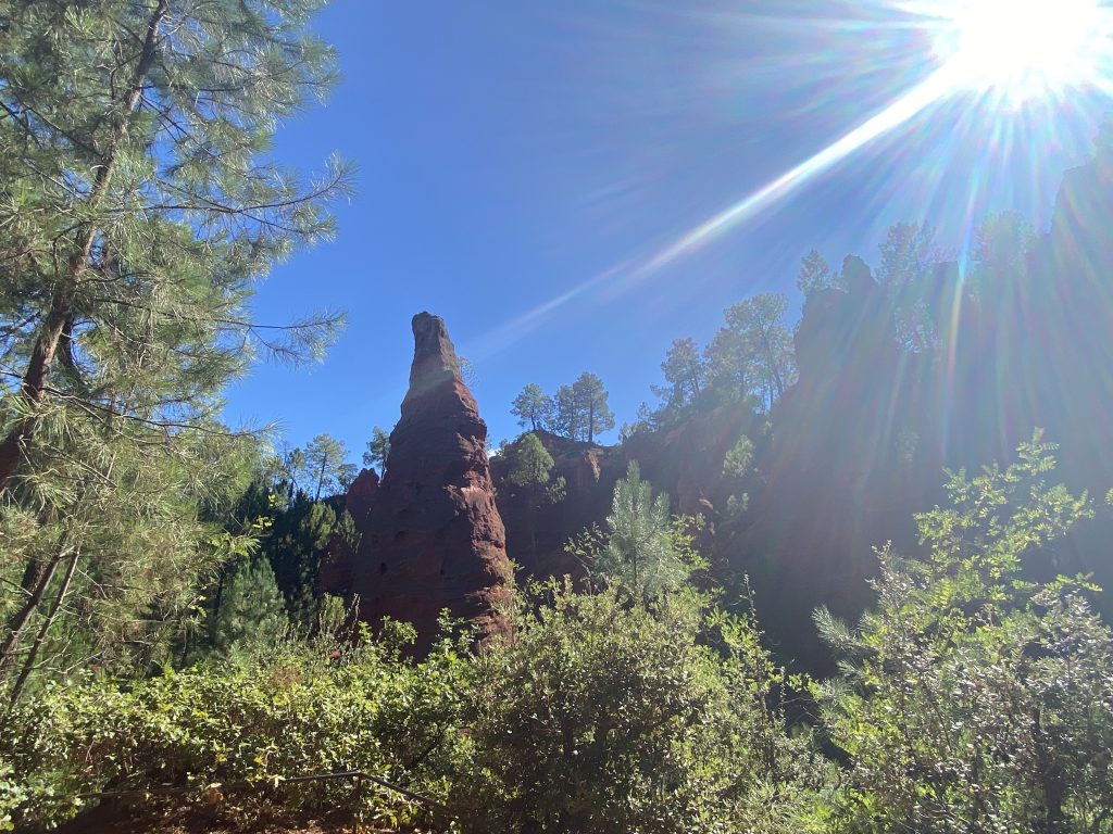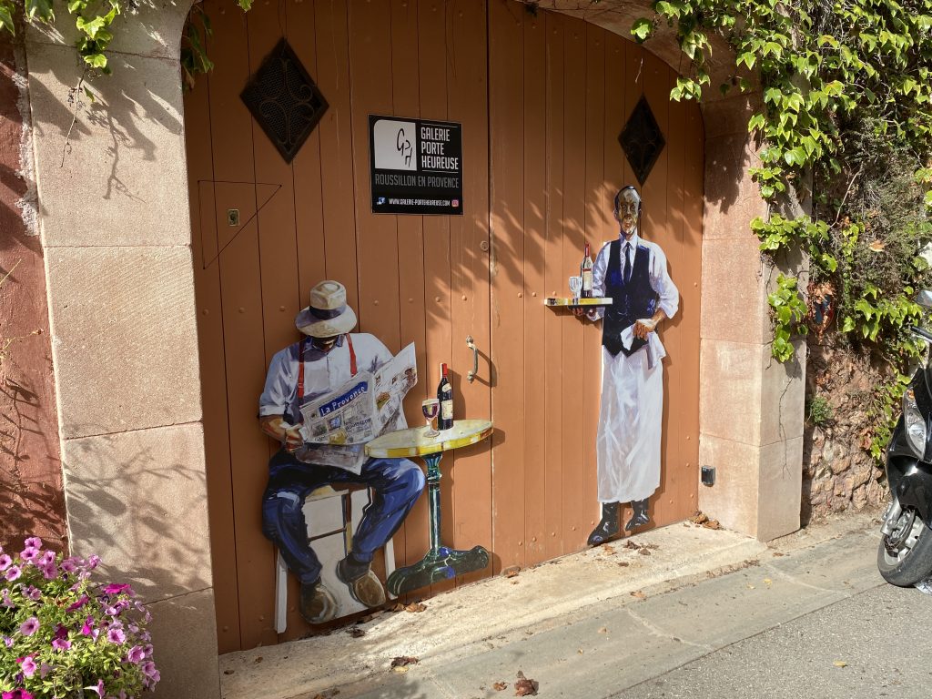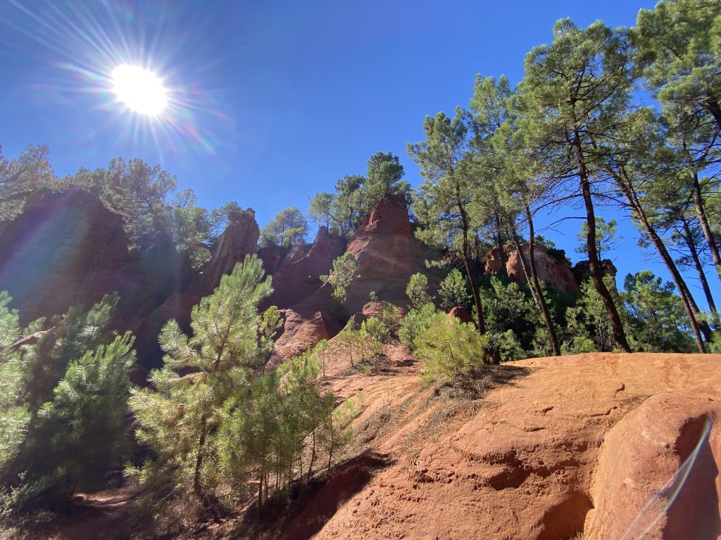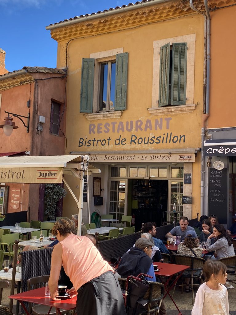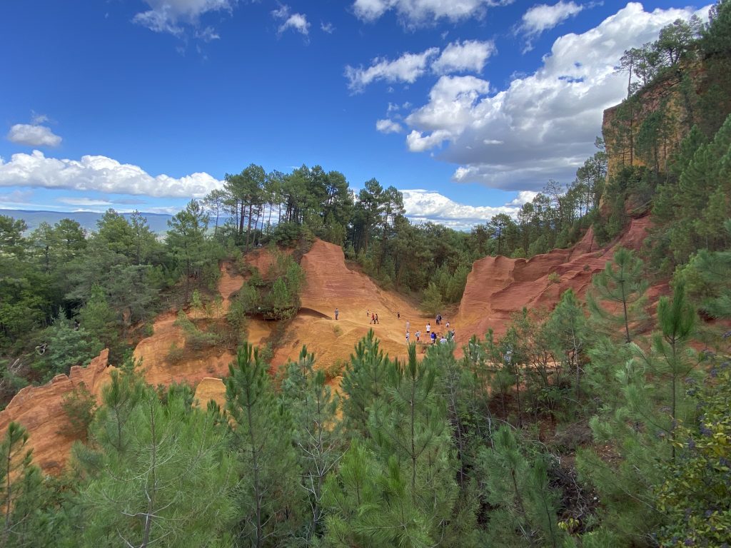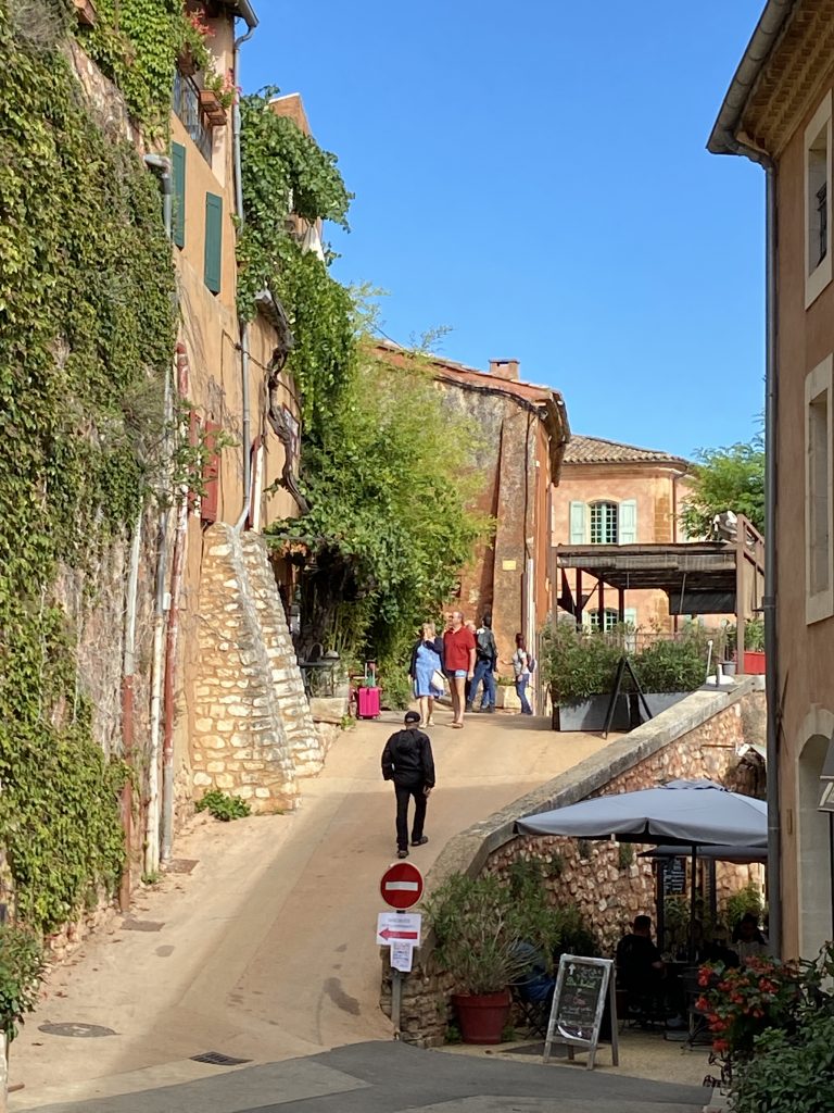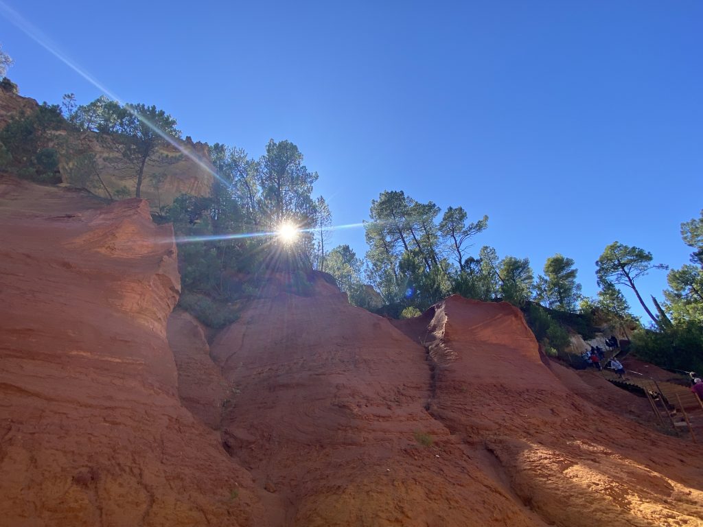 Die Zeit am Wasser ist für diese Reise vorbei. Schade, aber es gibt noch soviel andere schöne Dinge zu sehen. Zum Beispiel die Ockerberge von Roussillion und dieser Ort wie auch das Umland lohnen sich für eine Reise. Die Farben der Felsen sind so auffallend in rot, gelb, weiß und ocker. Das ist wunderschön und so ungewöhnlich, wenn man auf roter oder gelber Erde langspaziert. Auch der Ort selbst ist malerisch und die Häuschen sind in den selben unterschiedlichen Farben gestaltet wie die Erdtöne um sie herum. Es gibt kleine Läden, in denen man die Farben kaufen kann. Sie werden zum Malen genutzt und auch bei den Töpfern sind sie beliebt. Darüber könnte Petra aber mehr schreiben, denn sie hat sie beim Töpfern schon verwendet. Natürlich konnte sie auch nicht an diesen Farbpigmenten einfach so vorbei gehen und hat sich ein Set davon mitgenommen. Was mir her in diesem Örtchen gut gefallen hat, war das es wenig Kitsch zu kaufen gab, hier waren es eher besondere und zum Teil hochwertige Dinge, die aus der Gegend kommen. Honig, alles mögliche aus Lavendel, natürlich Farben und wer das nötige Kleingeld hatte, konnte hier auch Kunst in Form von Gemälden, Bildhauerkunst und Töpfersachen kaufen.