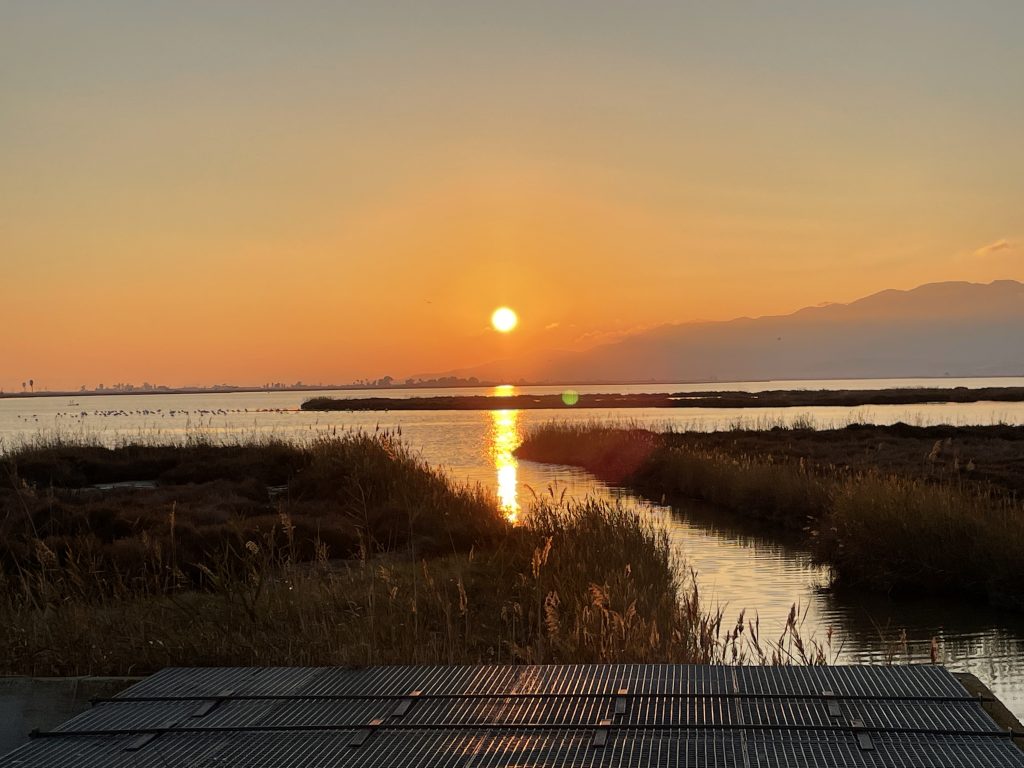 Wir beschliessen Barcelona auszulassen und noch weiter in den Süden zu fahren, wo es dann doch noch ein paar Grad wärmer ist. Auch haben hier oben im Norden die Campingplätze fast alle geschlossen. So fahren wir dann wieder den ganzen Tag, schrammen dabei an der beeindruckenden Gebirgskette des Montserrats vorbei und landen am späten Nachmittag auf einem fast leeren Womo-Stellplatz (die alle geöffnet haben) im Flussdelta des Ebre.