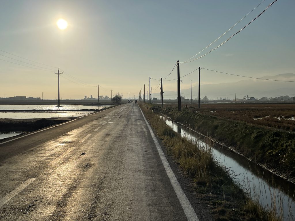 Sieht aus als wären wir in Vietnam? Es sind tatsächlich unglaublich viele Reisfelder und laut Google das grösste Reisanbaugebiet in Spanien und überall Orangenbäume
