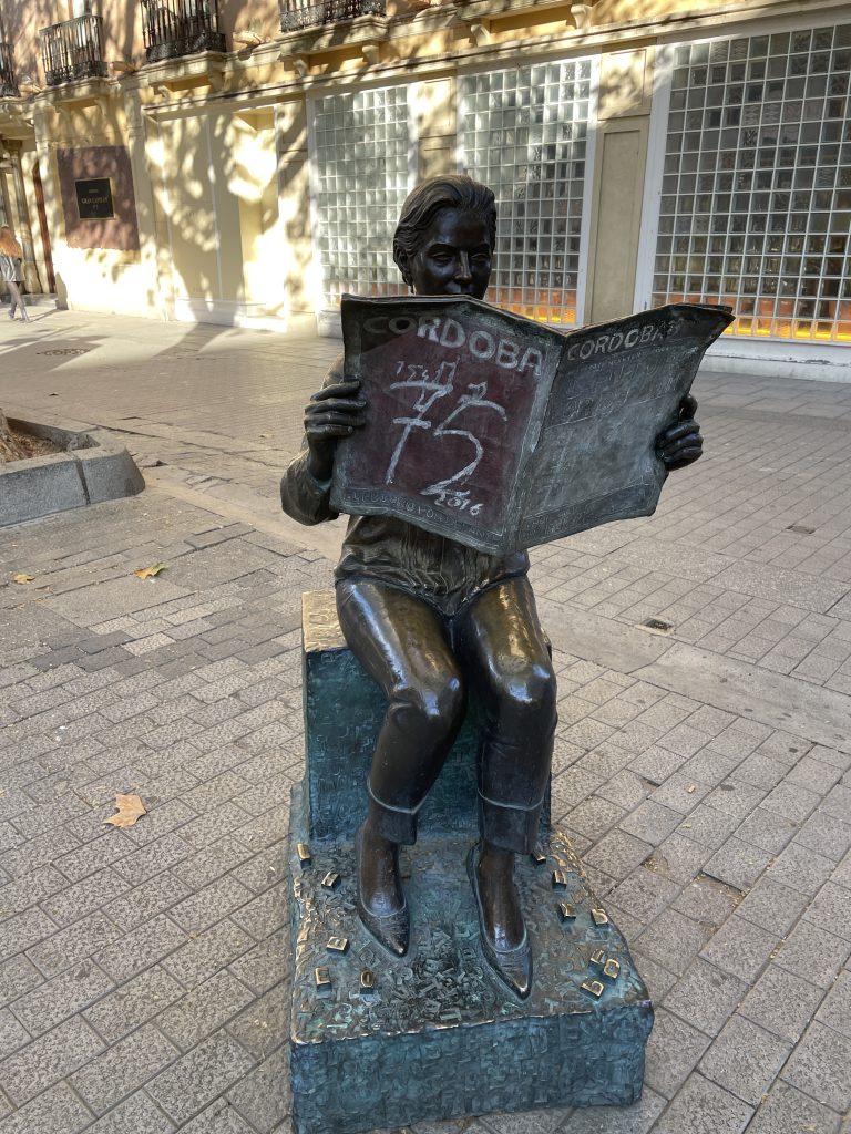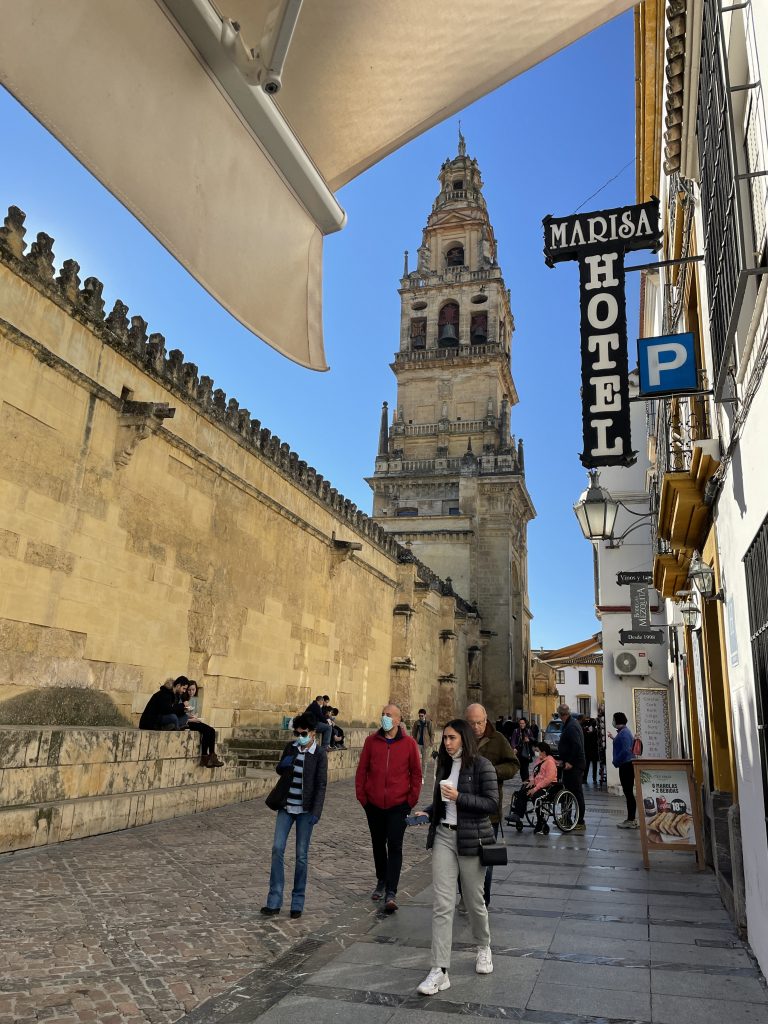 Nachdem wir vormittags etwa nochmal eine knappe Stunde durch Olivenplantagen gefahren sind, erreichen wir Cordoba. Was wir als erstes sehen, ist eine große, moderne, junge Stadt.