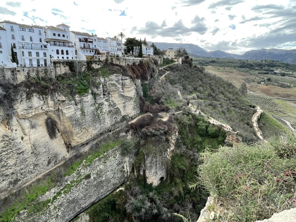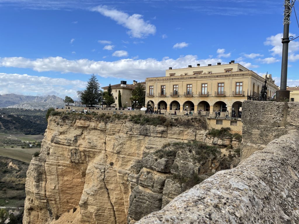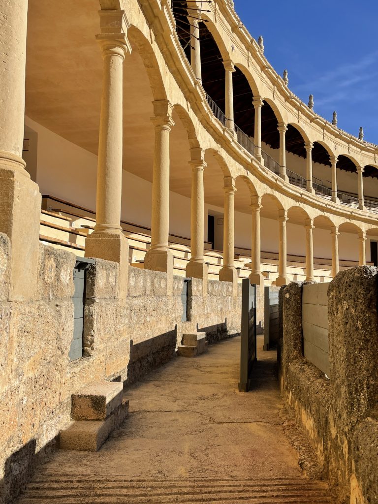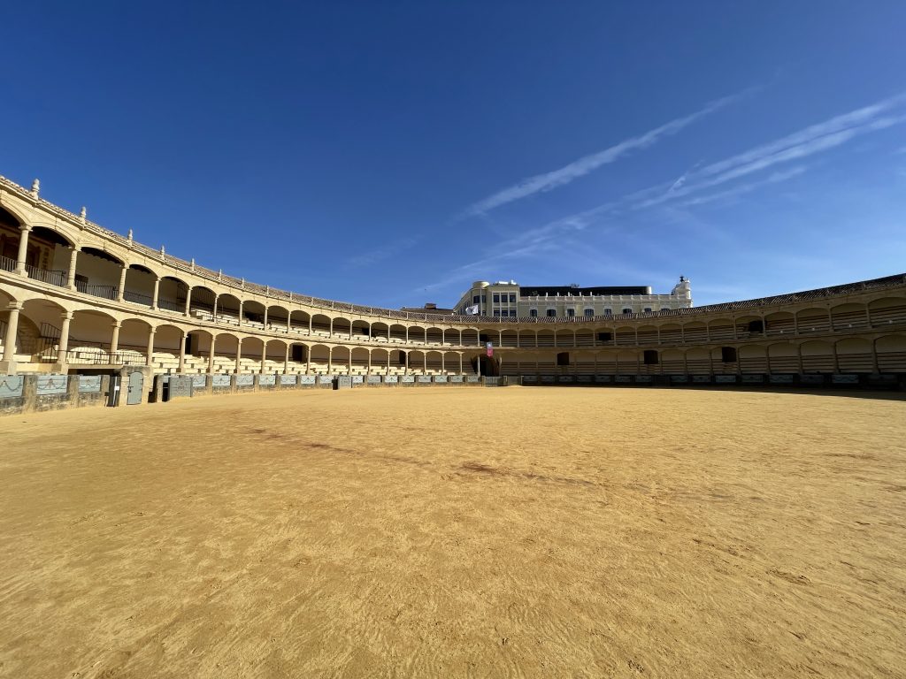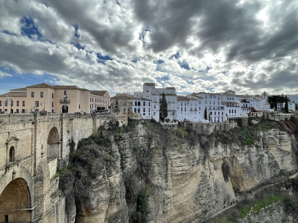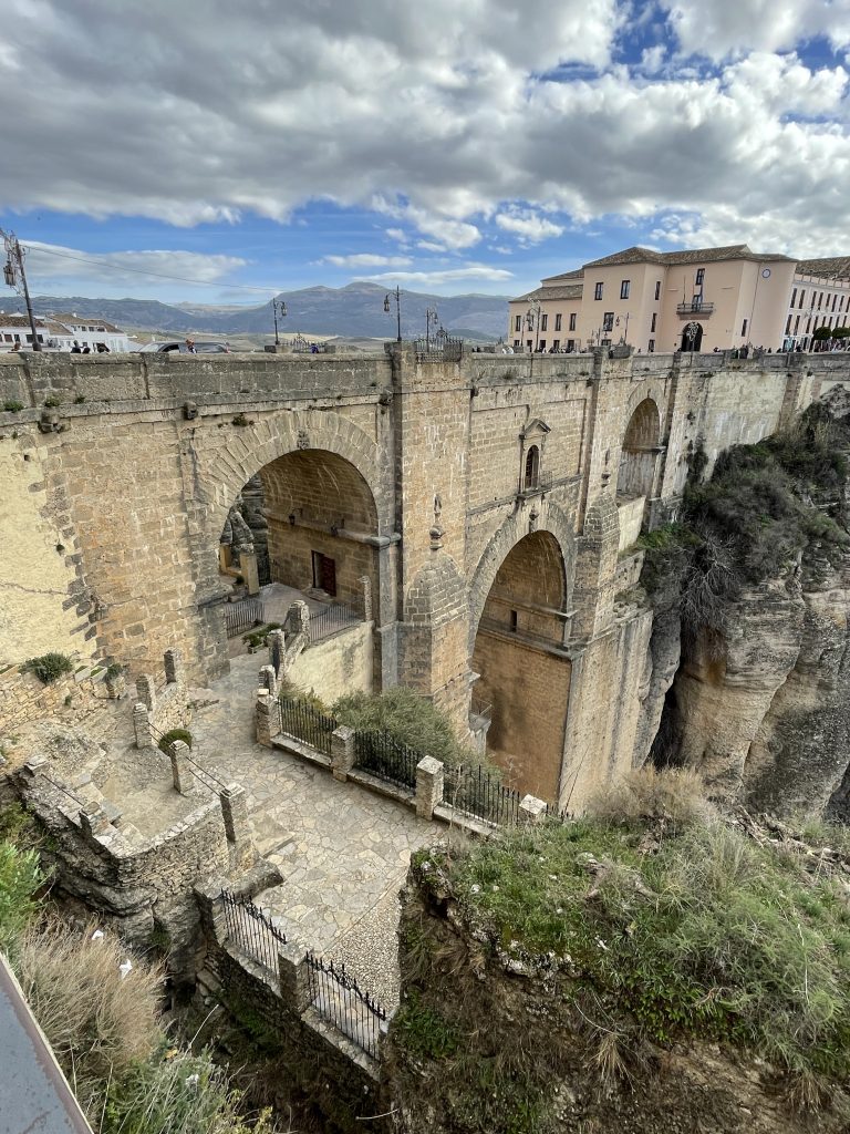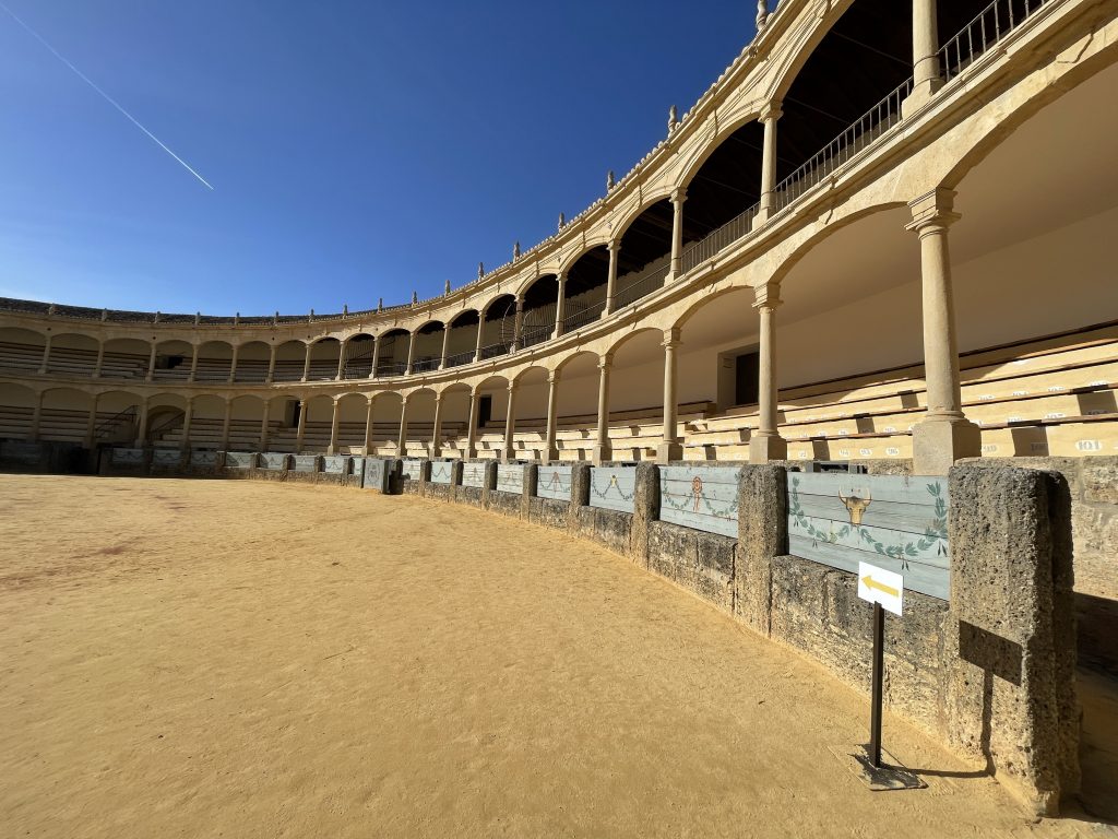 Wir verlassen den schönen Campingplatz in Olvera. Petra hat sich zu um 7 Uhr den Wecker gestellt, denn wir wissen nicht, ob wir in Ronda einen Platz finden. Aus Erfahrung wissen wir, dass man Vormittags eher einen freien Platz findet, als am Abend. Das Wetter ist sonnig, aber nicht mehr so warm wie an den vergangenen Tagen. Genau richtig, um sich eine Stadt anzusehen. Der Stellplatz ist sehr eng. Gut das wir so früh angereist sind. Wir finden einen Platz und dann gehts auch gleich los. Da es nur etwa 3 – 4 km sind, gehen wir zu Fuß. Gleich am Anfang einer sehr ausgedehnten Fußgängerzone, gibt es eine Möglichkeit zum Frühstück. Ein Cappuccino, einen Latte Macchiato, Butter, Konfitüre, frisches Olivenöl, frisches Tomatenmus und zwei große Brötchen für nur 4,60 €. Lecker war’s! Gestärkt geht es nun weiter. Petra möchte sich gerne das Museum der spanischen Hofreitschule und Stierkampfarena ansehen. Das es bis heute noch diese ungleichen Kämpfe zwischen Mensch und Stier gibt, können wir Beide nicht verstehen!!!
