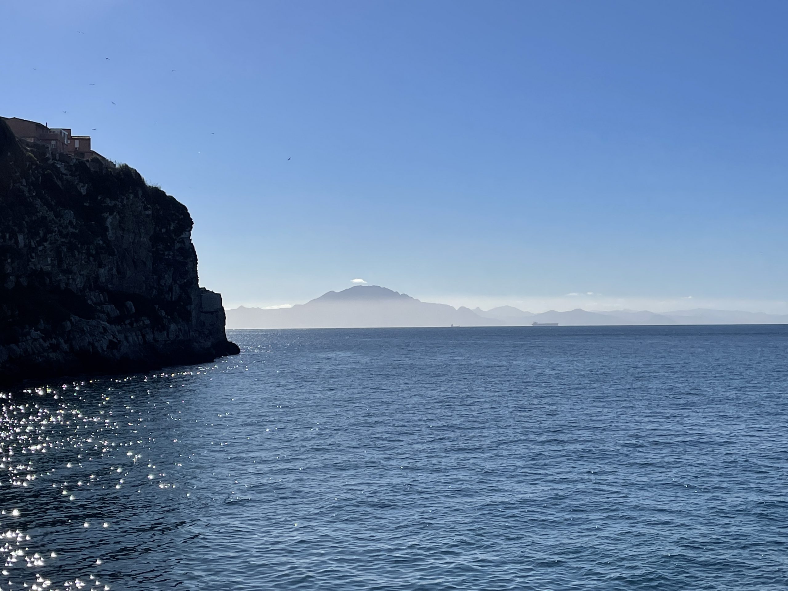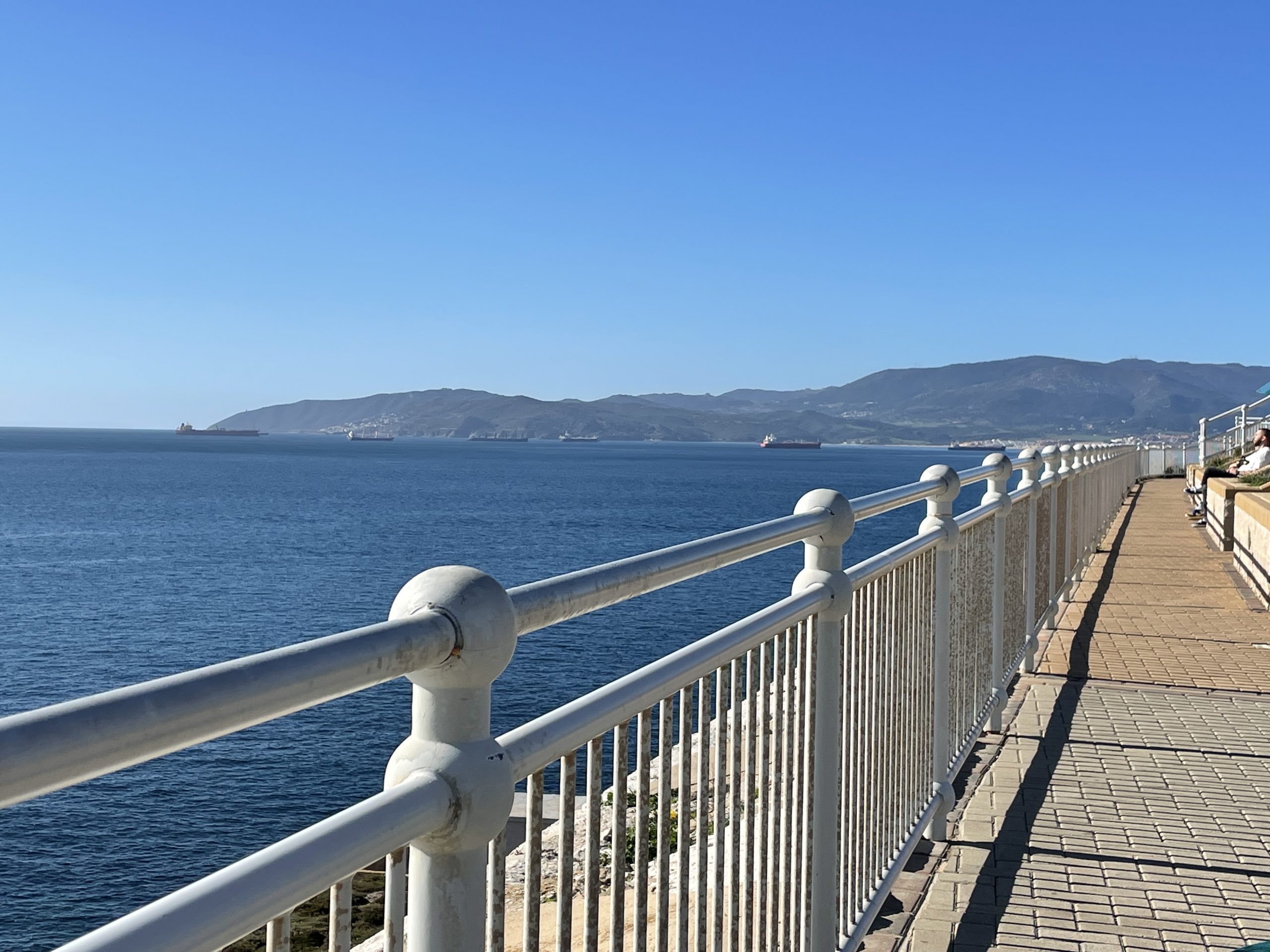 Am nächsten Vormittag geht es nochmal mit den Rädern los. Wir wollen Gibraltar einmal umrunden. Das sind etwa 15 km! Also nicht viel. Bloß nicht mehr laufen! Ich bin so gespannt- können wir wirklich Afrika sehen? Wir werden nicht enttäuscht! Wir sehen den anderen Kontinent und ich bin begeistert. Mein erster Gedanke geht dann aber doch an die vielen Flüchtlinge, die den Weg über dies Stückchen Meer nicht geschafft haben und dabei ist es garnicht weit. Es sind auch etwa nur 15 km. Trotzdem bin ich überwältigt! Bei einem Eis und einem Latte schauen wir auf Afrika!