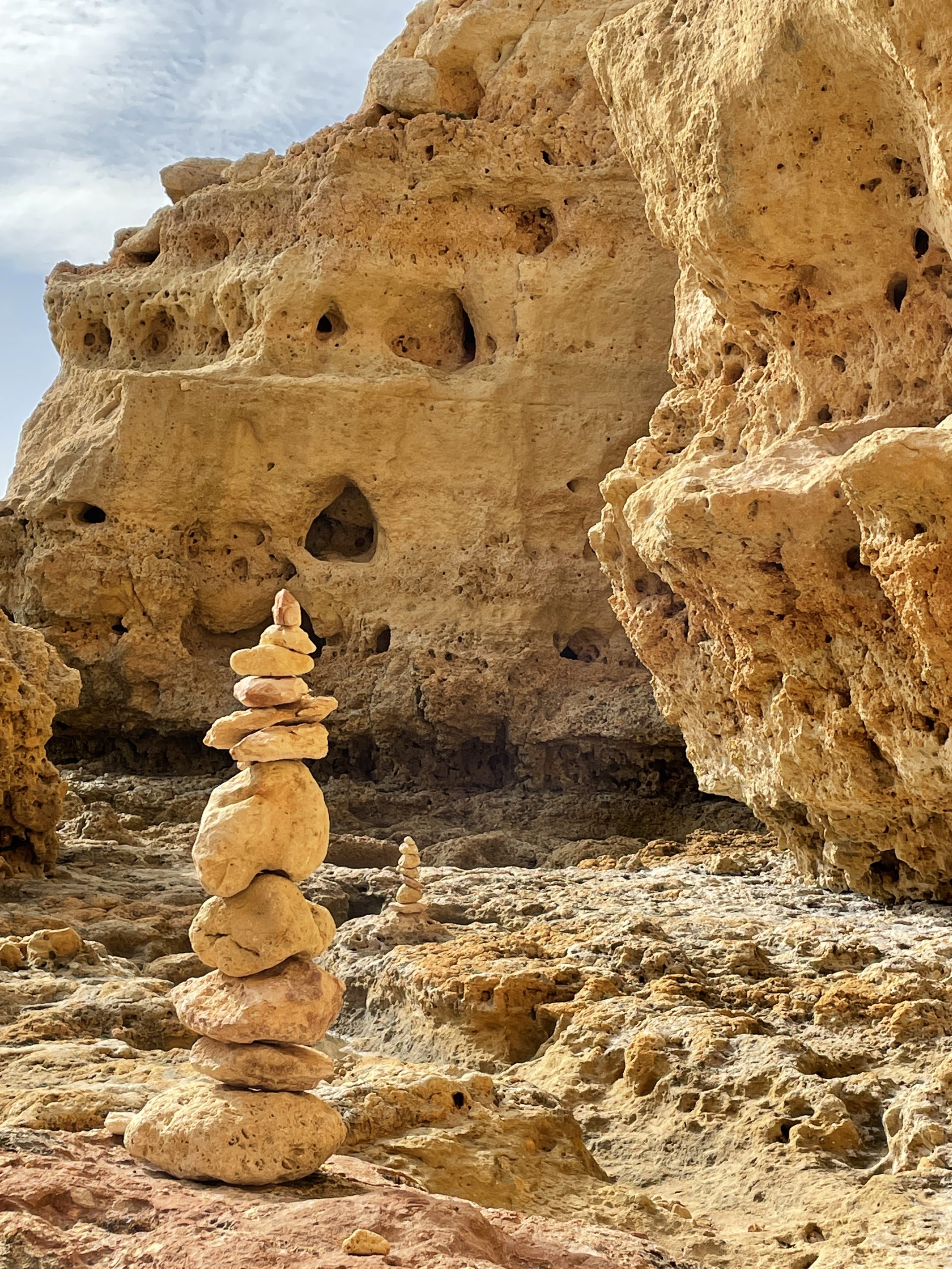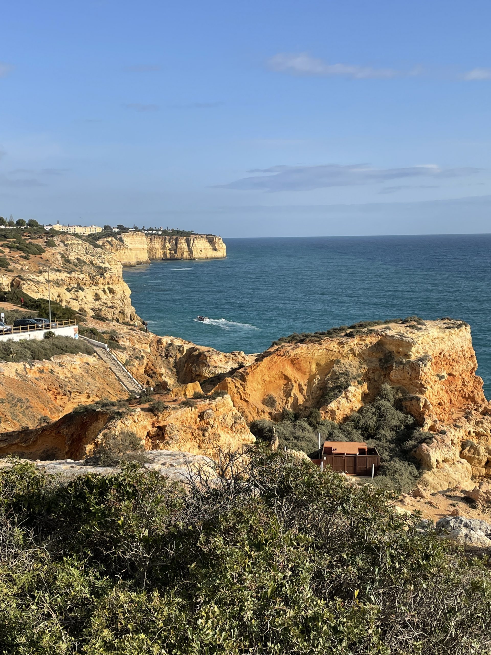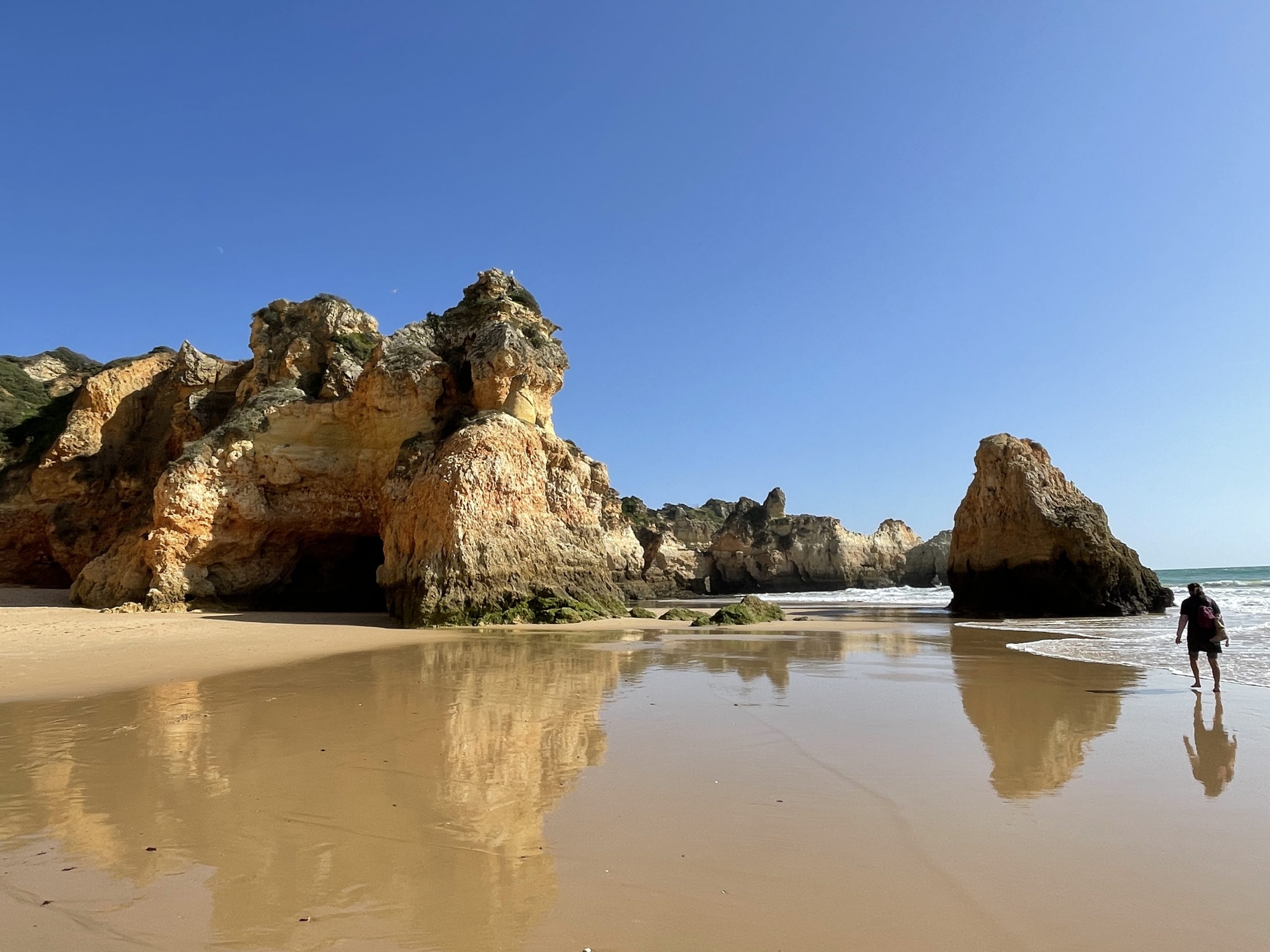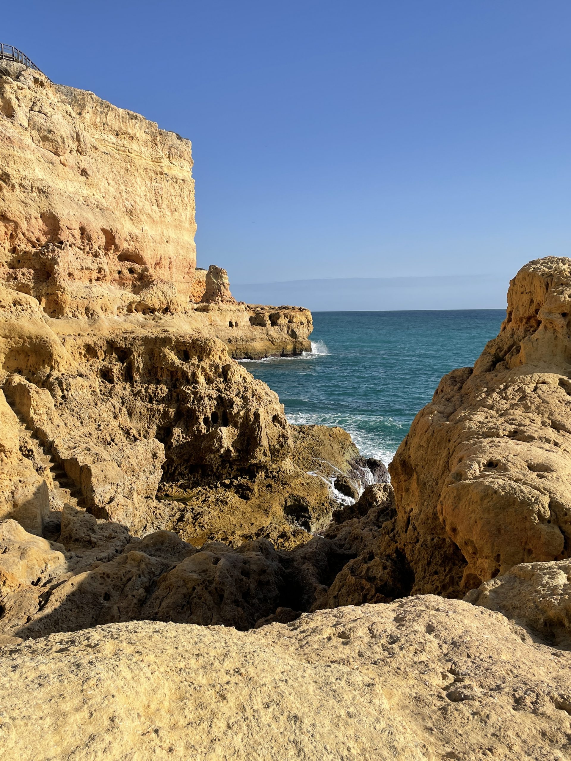 3 Wochen (!) haben wir auf dem Platz an der Steilküste Paria da Falesia verbracht. Wir standen abseits auf einem Womostellplatz, ohne Strom, weil die Solaranlage das bisschen produziert, was wir brauchen. Dadurch standen wir nur mit sehr wenigen, mit ausreichendem Abstand zueinander. Mit Sylvia und Reinhold aus Siegen haben wir uns in der Zeit auch ein bisschen angefreundet. Die beiden bleiben noch bis Ende März dort. Unten auf dem eigentlichen Platz stehen alle dicht an dicht und größtenteils auch schon wochenlang. Das wär mir nix. A) zu eng und B) wozu hab ich dann ein Wohnmobil, wenn ich damit nicht fahre? Dann wäre ich doch mit Wohnwagen besser bedient. Für Spritztouren in die Umgebung benutzen sie dann häufig Mietwagen, weil sie keine Lust haben alles immer abzubauen. Bei dem Gedöns was die alles mithaben dauert das natürlich auch eine ganze Weile. Von portables Klavier bis Thermomix. Aber dicht an dicht und Nachts hört man dort bestimmt den Nachbarn pupsen. Nene, das ist nicht unser Ding. Aber die 3 Wochen dort waren sehr schön. Wir haben irgendwie immer super Wetter und an der Steilküste und dem Meer kann man sich gar nicht satt sehen. Aber nun wurde es Zeit das wir weiterziehen. Carvoeiro hat eine total schöne Felsenküste, in der auch schöne Wege angelegt wurden. Wir sind den ganzen Tag dort rumgekrackselt und haben Millionen Fossilien in den Steinen bewundert.