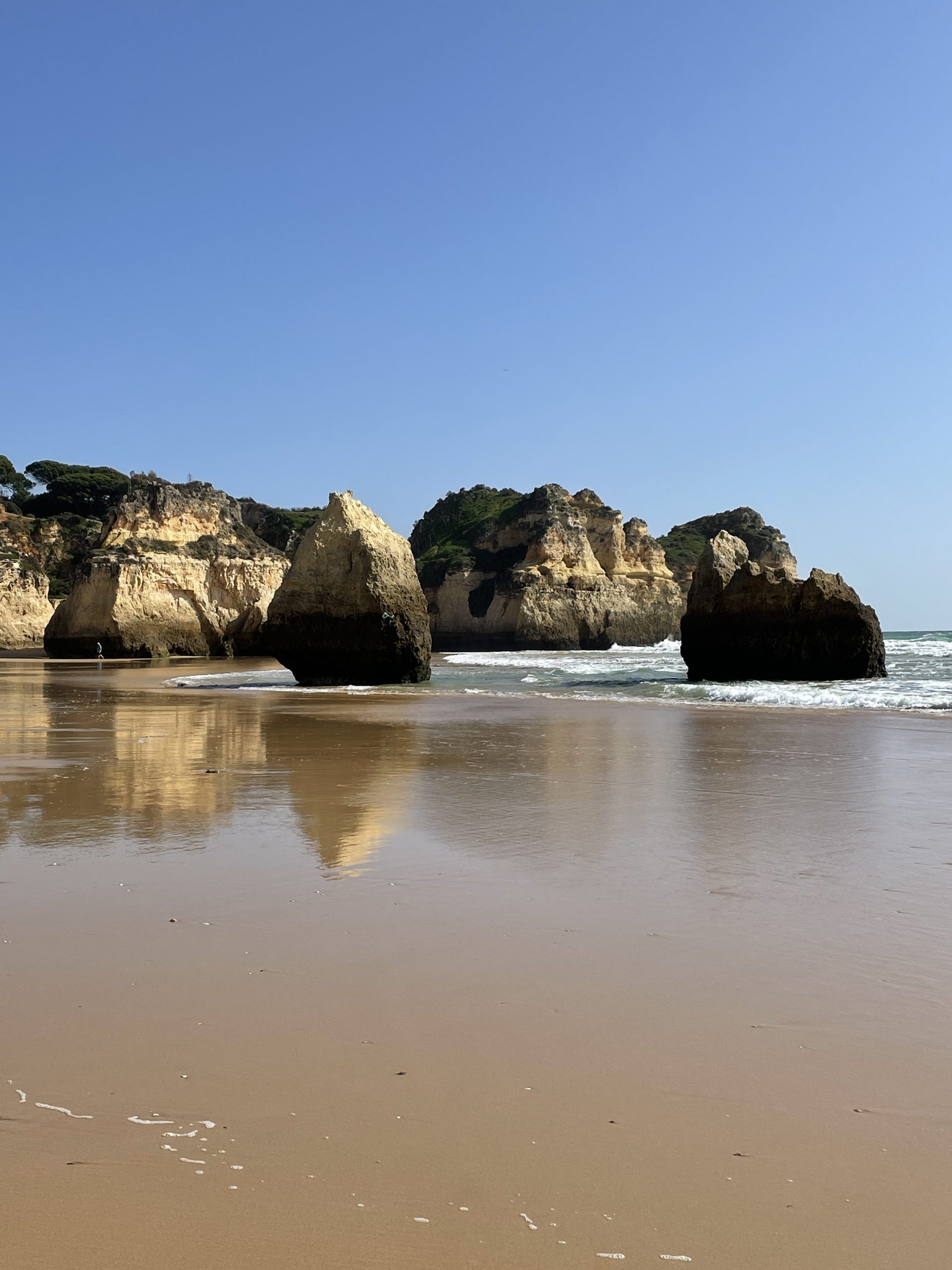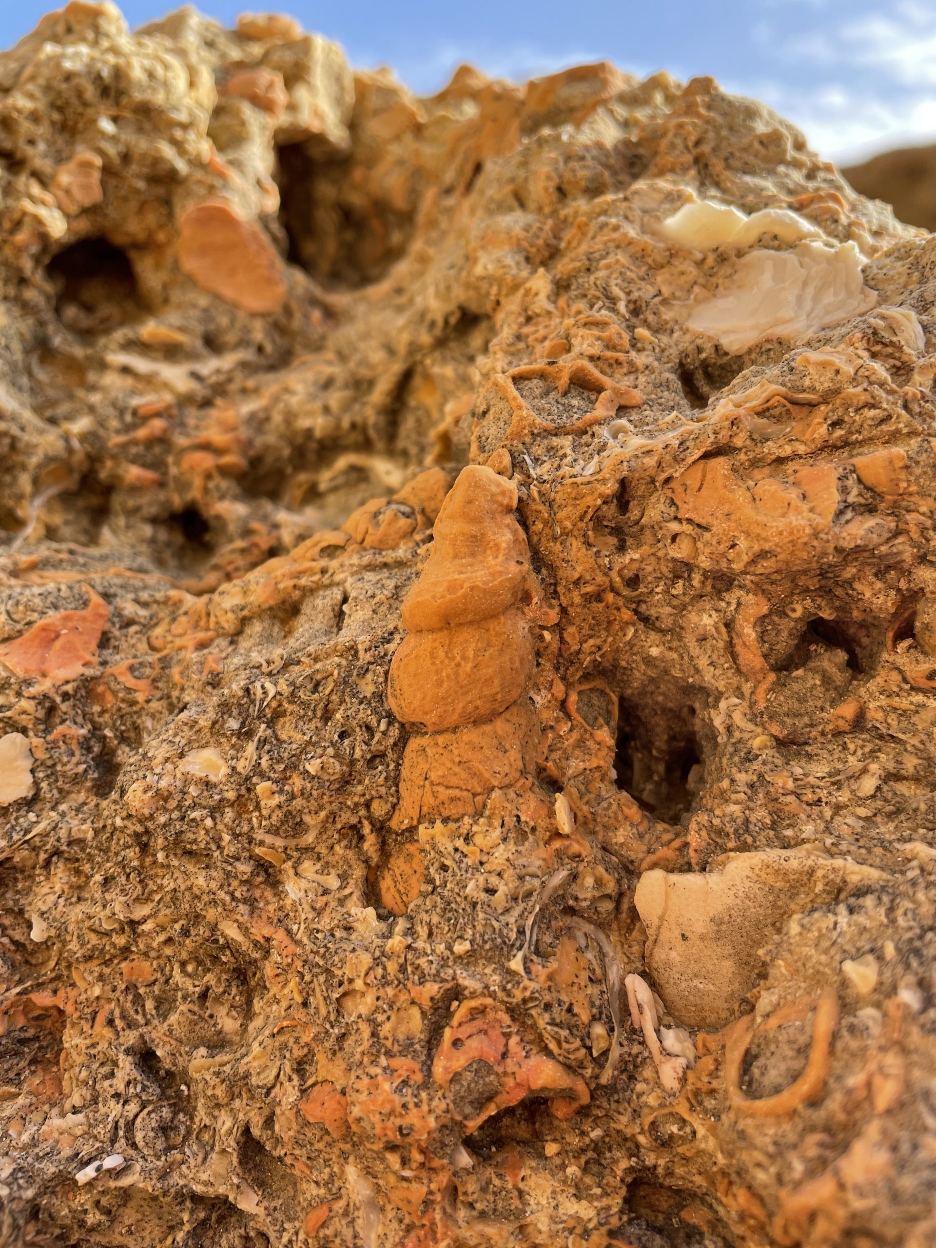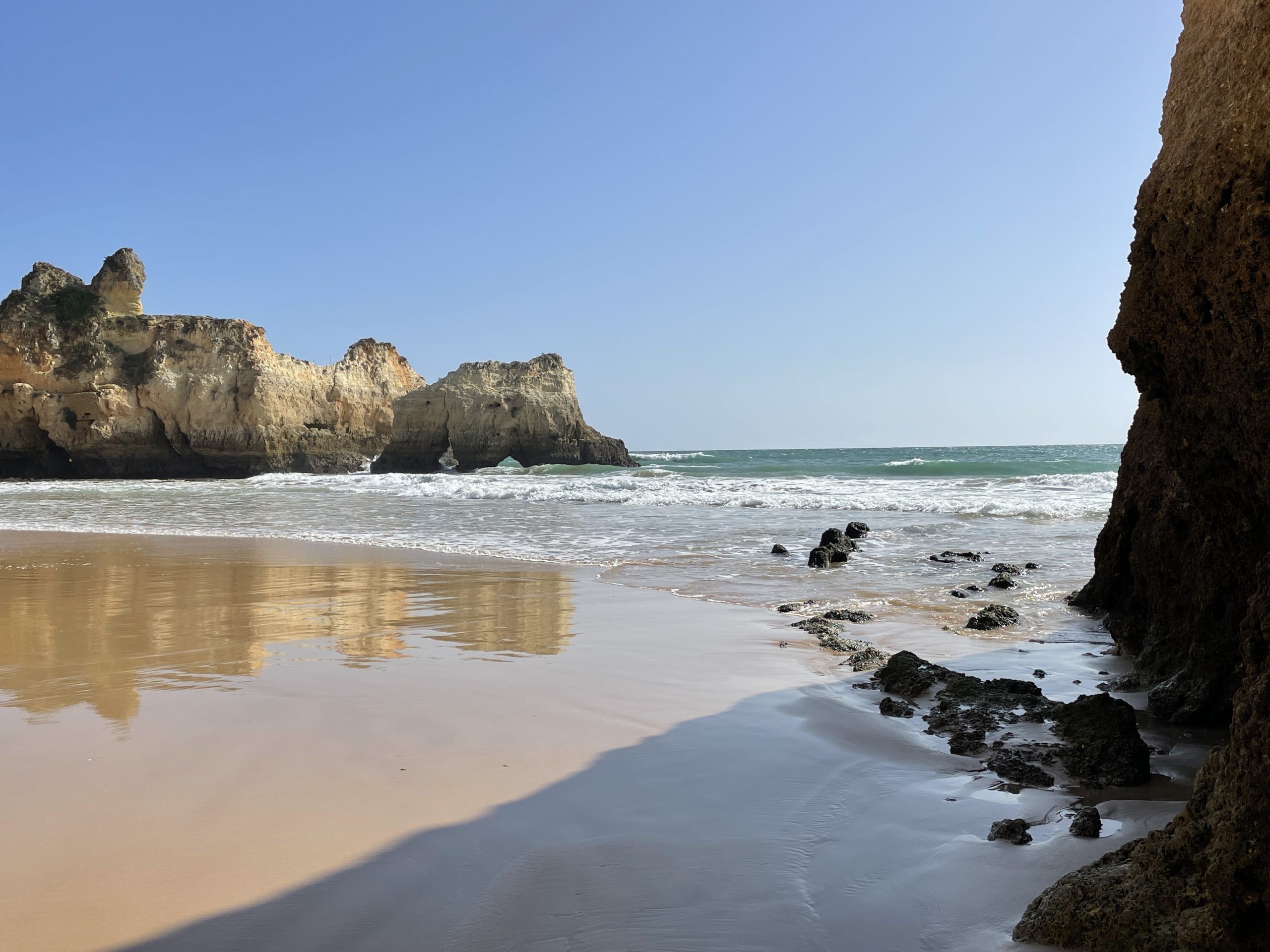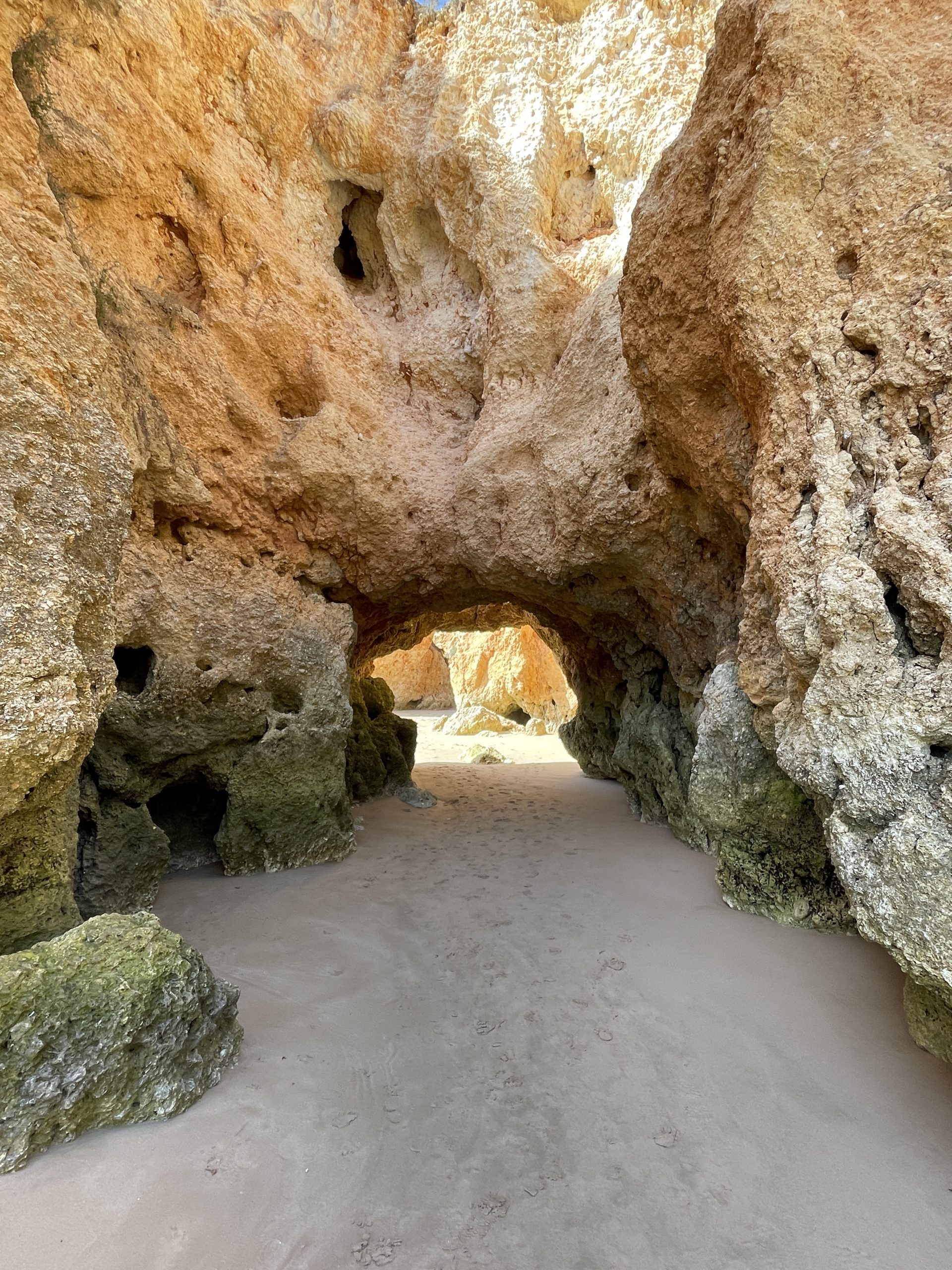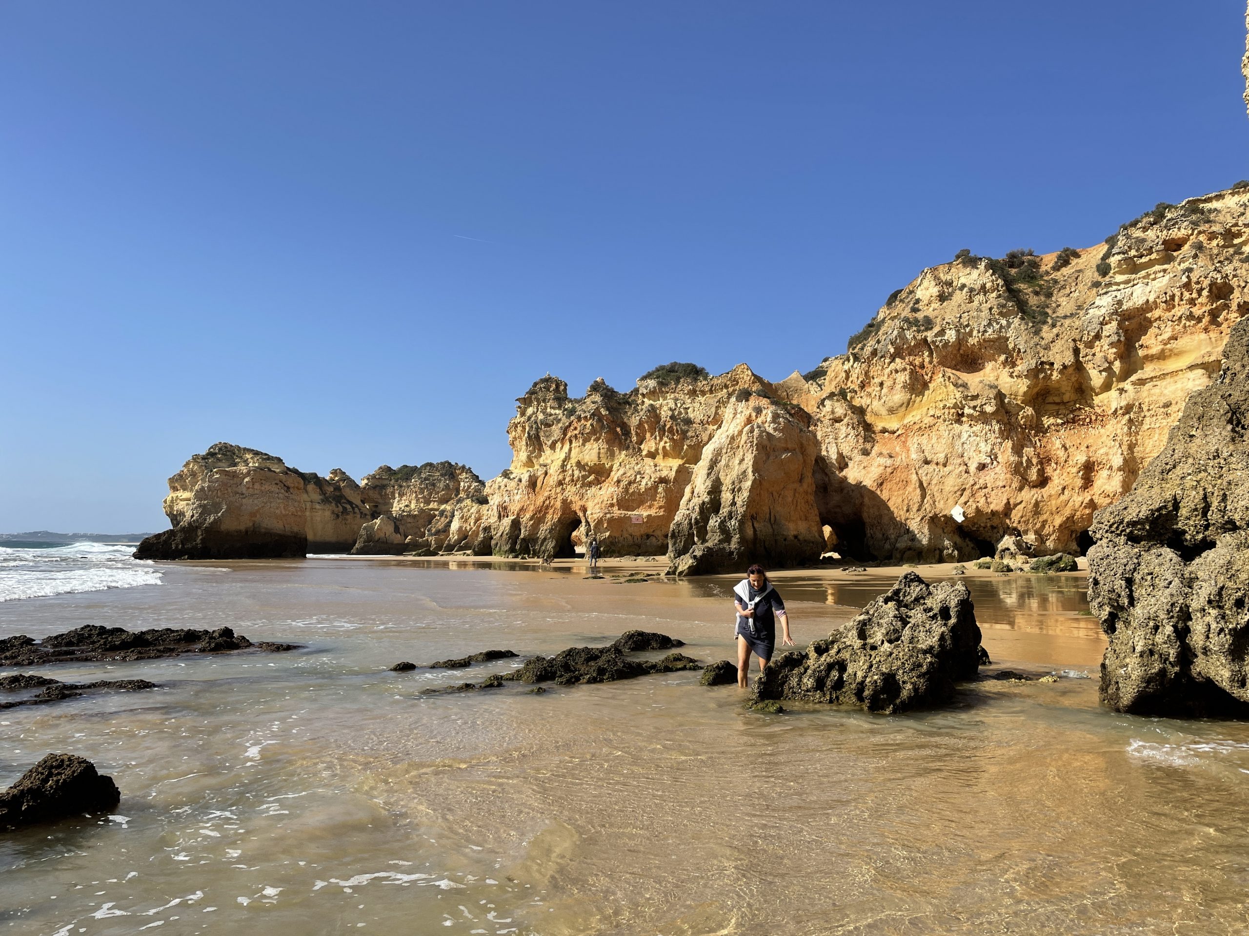 3 Wochen (!) haben wir auf dem Platz an der Steilküste Paria da Falesia verbracht. Wir standen abseits auf einem Womostellplatz, ohne Strom, weil die Solaranlage das bisschen produziert, was wir brauchen. Dadurch standen wir nur mit sehr wenigen, mit ausreichendem Abstand zueinander. Mit Sylvia und Reinhold aus Siegen haben wir uns in der Zeit auch ein bisschen angefreundet. Die beiden bleiben noch bis Ende März dort. Unten auf dem eigentlichen Platz stehen alle dicht an dicht und größtenteils auch schon wochenlang. Das wär mir nix. A) zu eng und B) wozu hab ich dann ein Wohnmobil, wenn ich damit nicht fahre? Dann wäre ich doch mit Wohnwagen besser bedient. Für Spritztouren in die Umgebung benutzen sie dann häufig Mietwagen, weil sie keine Lust haben alles immer abzubauen. Bei dem Gedöns was die alles mithaben dauert das natürlich auch eine ganze Weile. Von portables Klavier bis Thermomix. Aber dicht an dicht und Nachts hört man dort bestimmt den Nachbarn pupsen. Nene, das ist nicht unser Ding. Aber die 3 Wochen dort waren sehr schön. Wir haben irgendwie immer super Wetter und an der Steilküste und dem Meer kann man sich gar nicht satt sehen. Aber nun wurde es Zeit das wir weiterziehen. Carvoeiro hat eine total schöne Felsenküste, in der auch schöne Wege angelegt wurden. Wir sind den ganzen Tag dort rumgekrackselt und haben Millionen Fossilien in den Steinen bewundert.