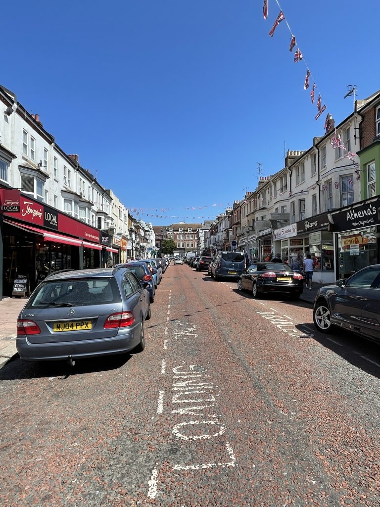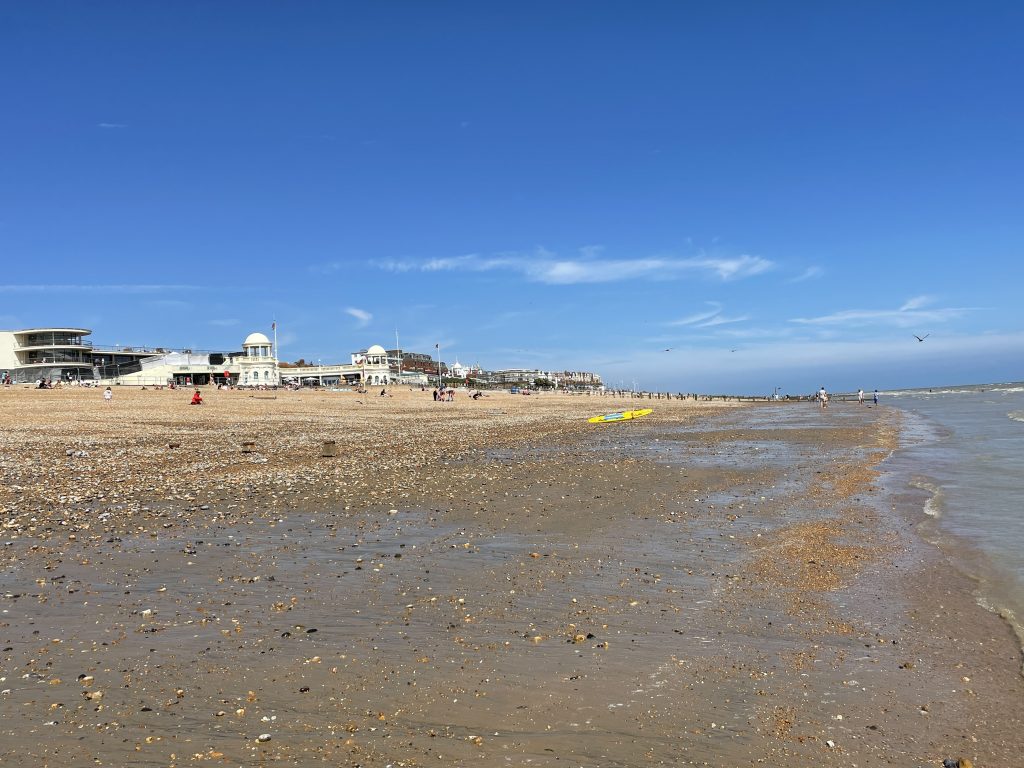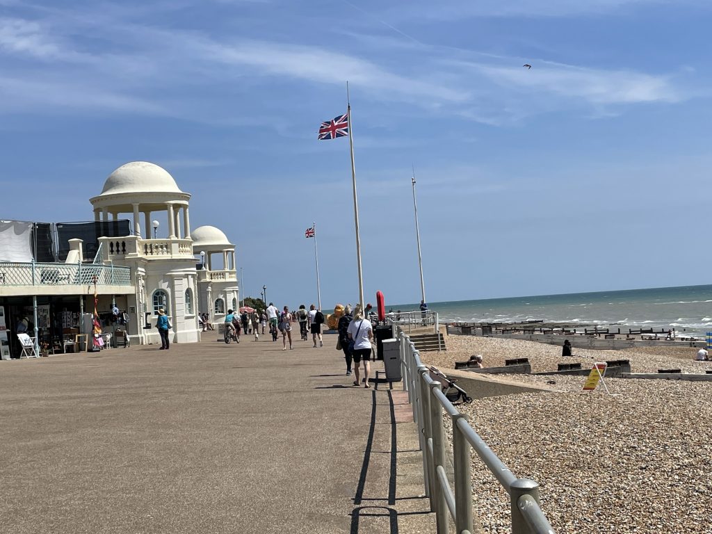 Heute Morgen haben wir draußen in aller Ruhe gefrühstückt, um dann mit den Rädern ans Meer zu fahren. Es ist sehr gewöhnungsbedürftig immer auf der „falschen“ Seite zu fahren. Außerdem sind die Straßen, anders als in Deutschland sehr eng. Ohne Helm fahren wir hier nicht los. Unser Ziel ist Bexhill on sea. Ein altes Seebad. Mir gefallen besonders die vielen kleinen Läden mit schönen Dingen. Vor allen gibt es sehr viele Antiquitäten- und Secondhandläden, die alle gut besucht sind. Aus zweiter Hand ist auch nachhaltiger, als immer alles ganz neu zu kaufen. Schön ist auch, das es viele englische Urlauber gibt, aber kaum andere Nationalitäten zu finden sind. Ganz anders als in Spanien, wo man fast nur unter Deutschen ist. Und dann die Landschaft! Überall undurchdringliche Hecken und uralte Bäume, viele Alleestraßen und alte Gemäuer.
