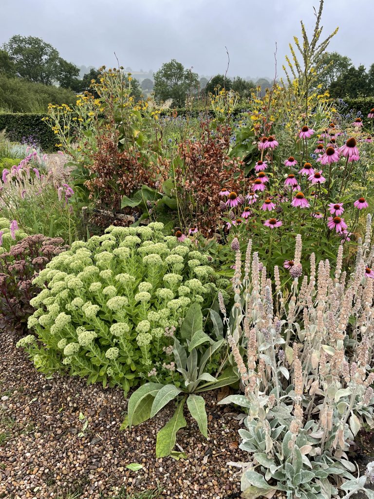 Am nächsten Morgen machten wir uns zeitig auf den Weg, weil wir für 10 Uhr Tickets im Yeo Valley Organic Garden hatten. Sind ja nur ein paar Kilometer. Leider nieselt es so vor sich hin. Aber es ist nicht kalt und so latschen wir im 20 Grad warmen Regen durch den Garten, der auch bei Regen sehr schön ist. Heide sammelt hier ohne Ende Blumensaat und alles was sie an Pflanzen findet, wird bei Google Lens identifiziert. Sie hat sich schon viele kleine Tütchen gebastelt. Bin gespannt wann die Pflanzen sich bei uns zu Hause im Garten alle wiederfinden 🙂