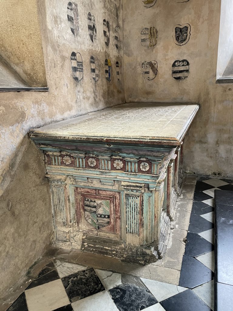 Wir machen uns nach dem Frühstück wieder auf den Weg. Heute haben wir uns nur das Fairleigh Hungerford Castle vorgenommen, was auf unserem Weg lag. Unterwegs waren wir dann noch bei Lidl einkaufen. Lidl und Aldi gibts hier auch wie Sand am Meer. Da England ja grundsätzlich teurer ist, müssen wir schon so ein bisschen aufs Geld achten. Schön ist aber, dass auch Aldi und Lidl hier die britischen Produkte verkaufen und überhaupt sind die Engländer da etwas vorbildlicher als wir. Auch bei der Sache mit dem Plastik. Nach ca. 30 Km erreichen wir das Castle. Mehr ja eine Ruine – aber trotzdem sehr interessant. Die Crypta und die Mördergrube fand ich allerdings etwas gruselig – zumal man sich hautnah vorstellen konnte, wie es da unten in der Mördergrube wohl so war.