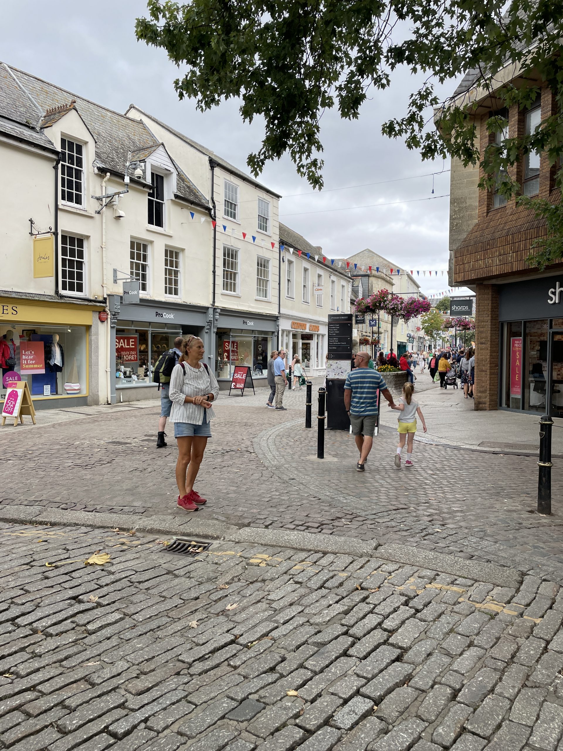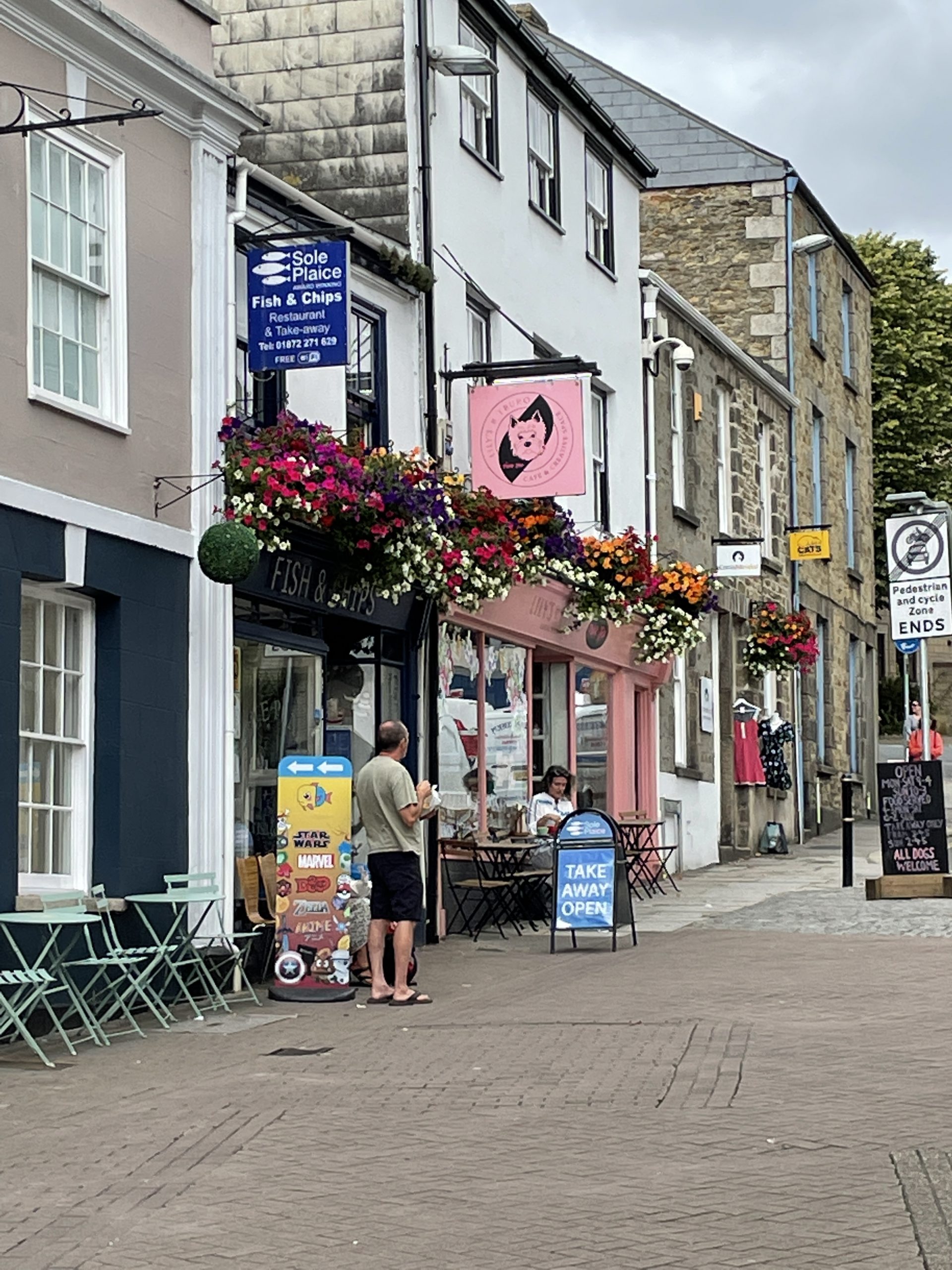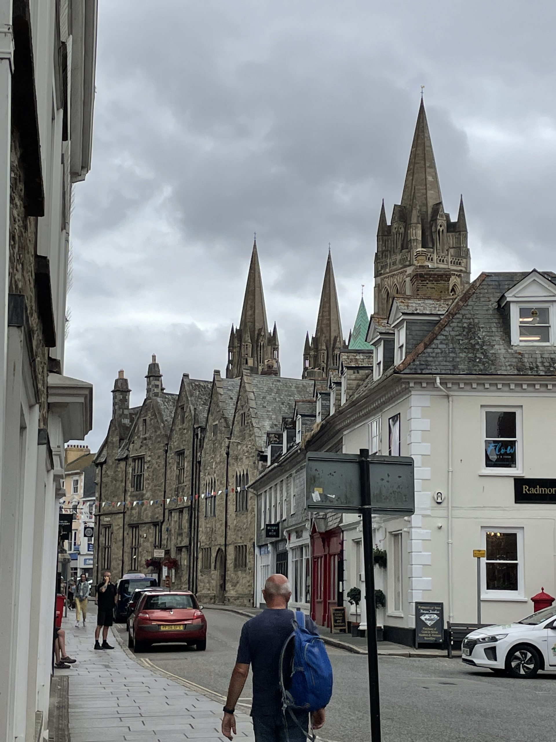 Truro ist eine sehr schöne kleine Stadt. Wir sind den ganzen Tag durch die vielen schönen Geschäfte und Straßen gelaufen. Man muss in England echt aufpassen das man nicht in einen Kaufrausch verfällt. Es gibt hier einfach viele tolle, schöne und auch witzige Dinge, von Second Hand bis Neu. Geburtstagskarten, Grußkarten und sonstige Karten scheinen in England sehr beliebt zu sein. Allein in Truro gab es mindestens 3 Läden davon, dicht beeinander und machen keine Anstalten pleite zu gehen. Ansonsten gibt es in Truro wirklich alles zu kaufen was man braucht, außer einen Kaffeefilterhalter. Das scheint hier nicht die bevorzugte Art Kaffee zu kochen zu sein. Unser Halter gibt den Geist auf. Naja dann eben doch mit Panzertape reparieren. Aber dafür haben wir u.a. eine neue Luftpumpe, Fahrradschlauch und viele schöne Kleinigkeiten bekommen.