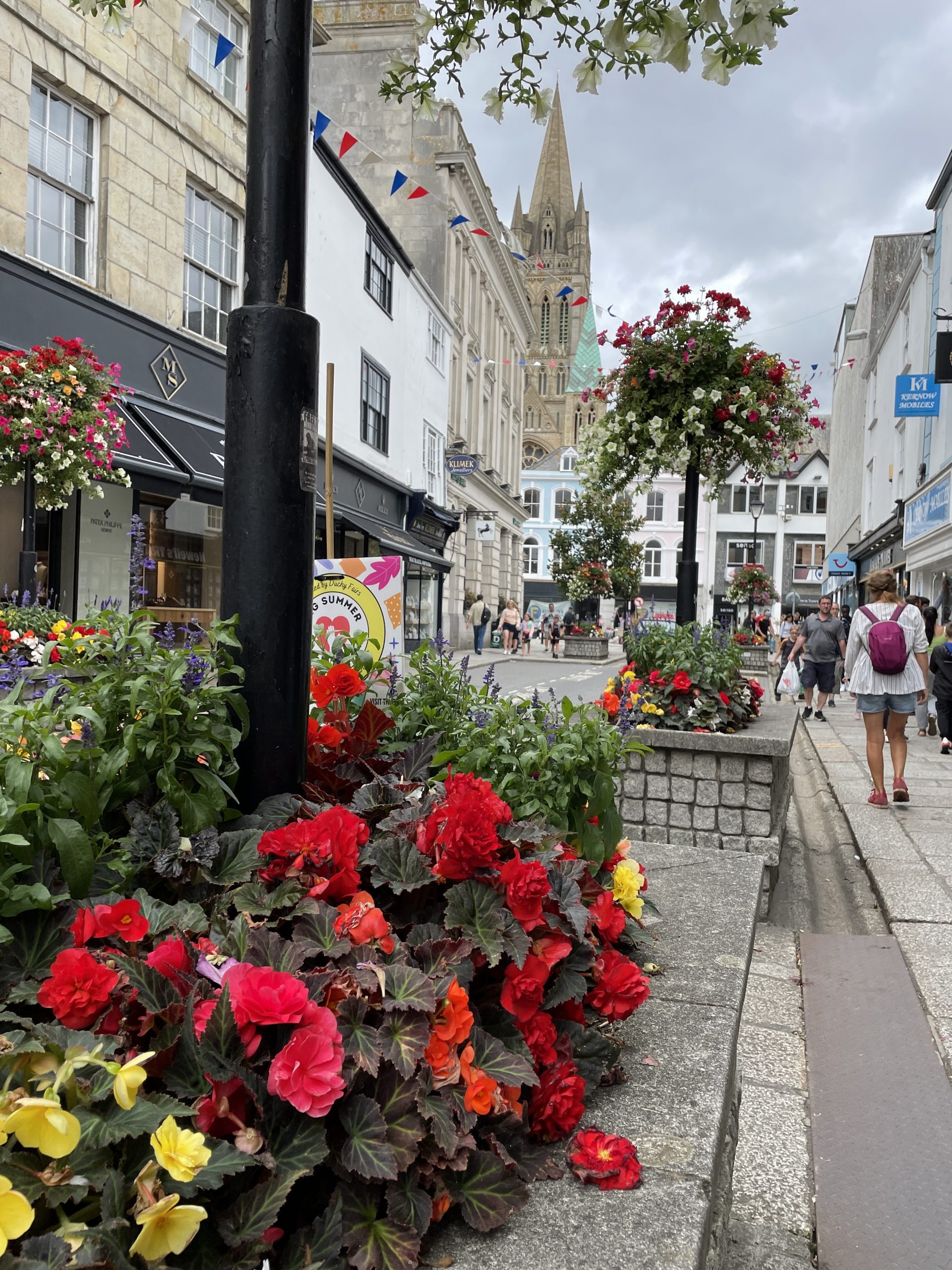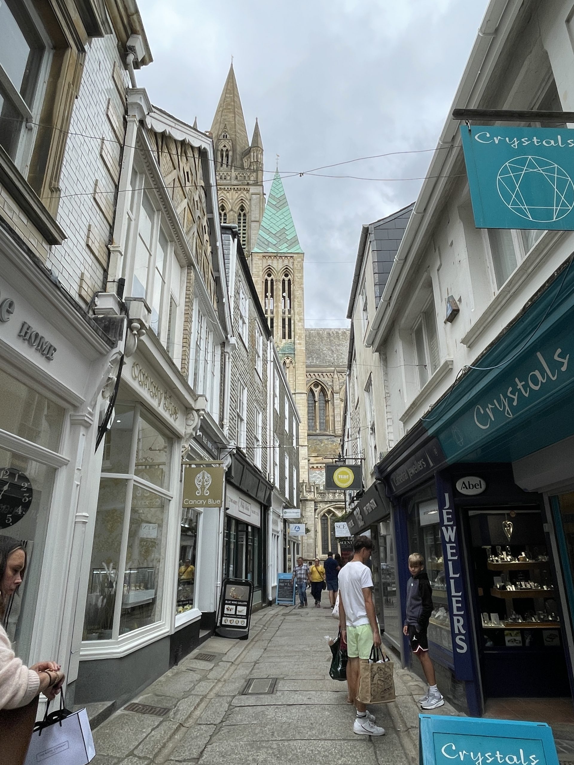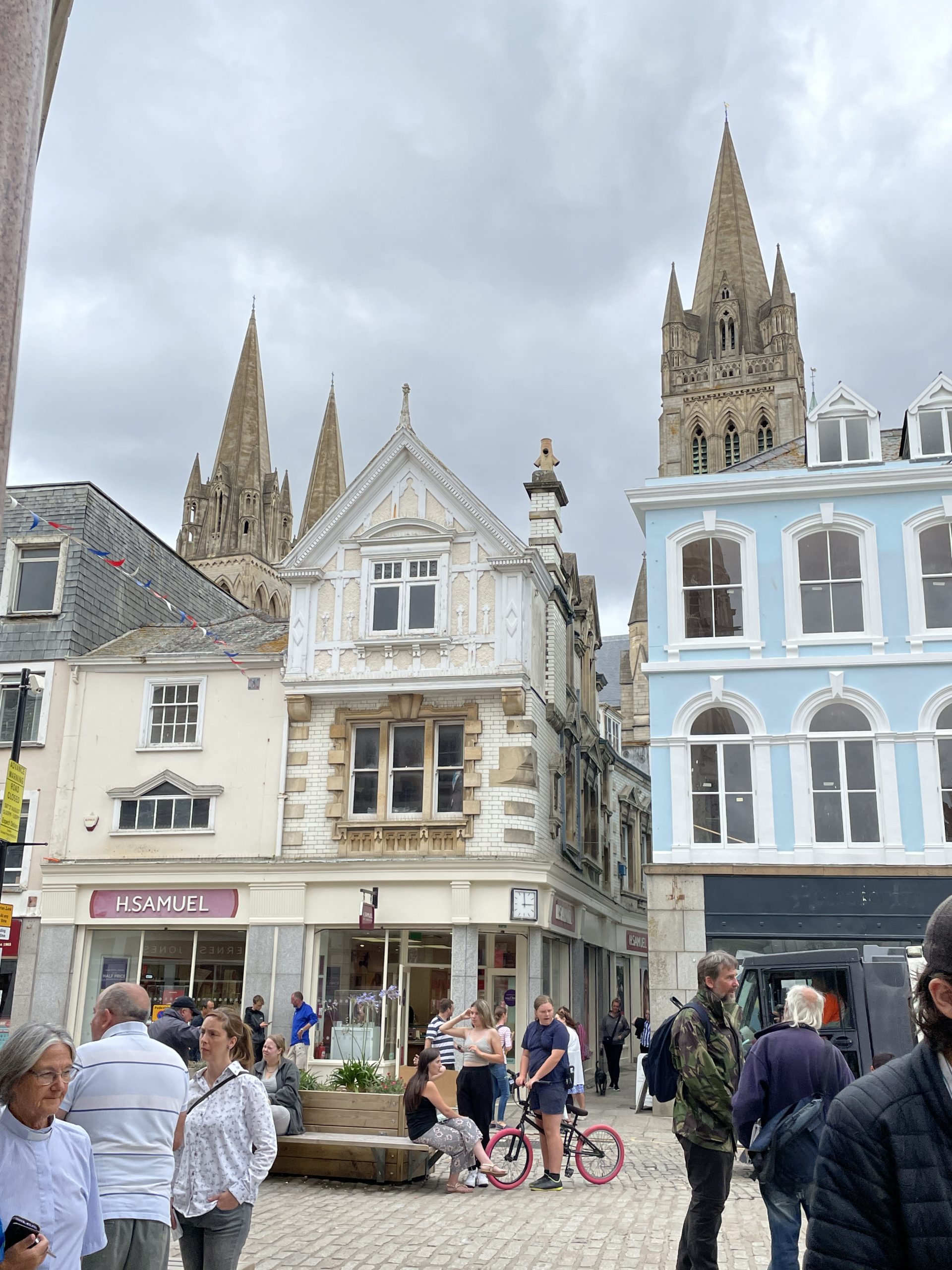 Truro ist eine sehr schöne kleine Stadt. Wir sind den ganzen Tag durch die vielen schönen Geschäfte und Straßen gelaufen. Man muss in England echt aufpassen das man nicht in einen Kaufrausch verfällt. Es gibt hier einfach viele tolle, schöne und auch witzige Dinge, von Second Hand bis Neu. Geburtstagskarten, Grußkarten und sonstige Karten scheinen in England sehr beliebt zu sein. Allein in Truro gab es mindestens 3 Läden davon, dicht beeinander und machen keine Anstalten pleite zu gehen. Ansonsten gibt es in Truro wirklich alles zu kaufen was man braucht, außer einen Kaffeefilterhalter. Das scheint hier nicht die bevorzugte Art Kaffee zu kochen zu sein. Unser Halter gibt den Geist auf. Naja dann eben doch mit Panzertape reparieren. Aber dafür haben wir u.a. eine neue Luftpumpe, Fahrradschlauch und viele schöne Kleinigkeiten bekommen.