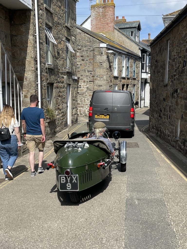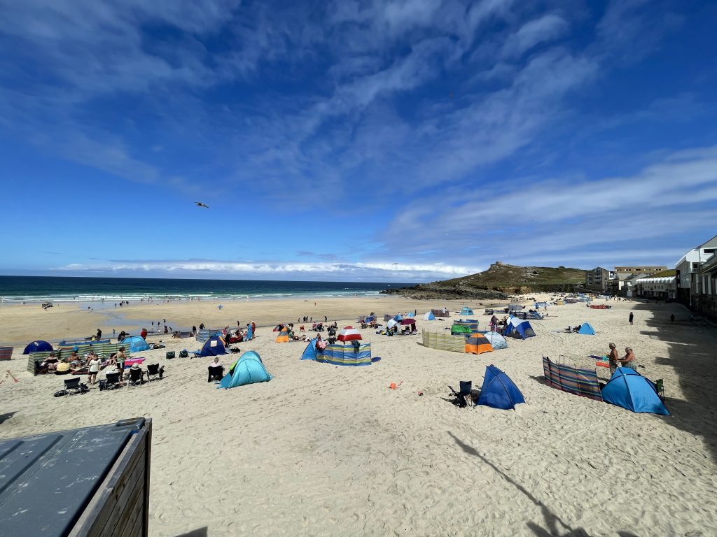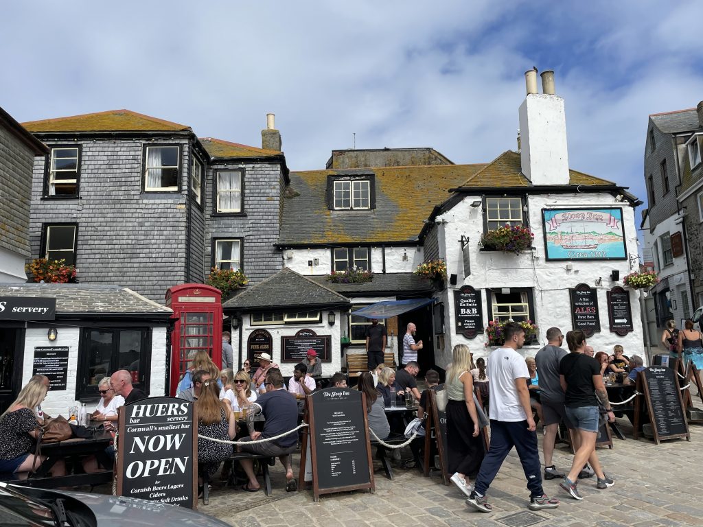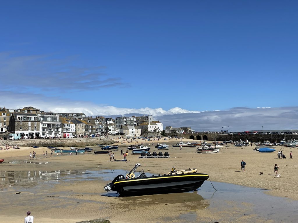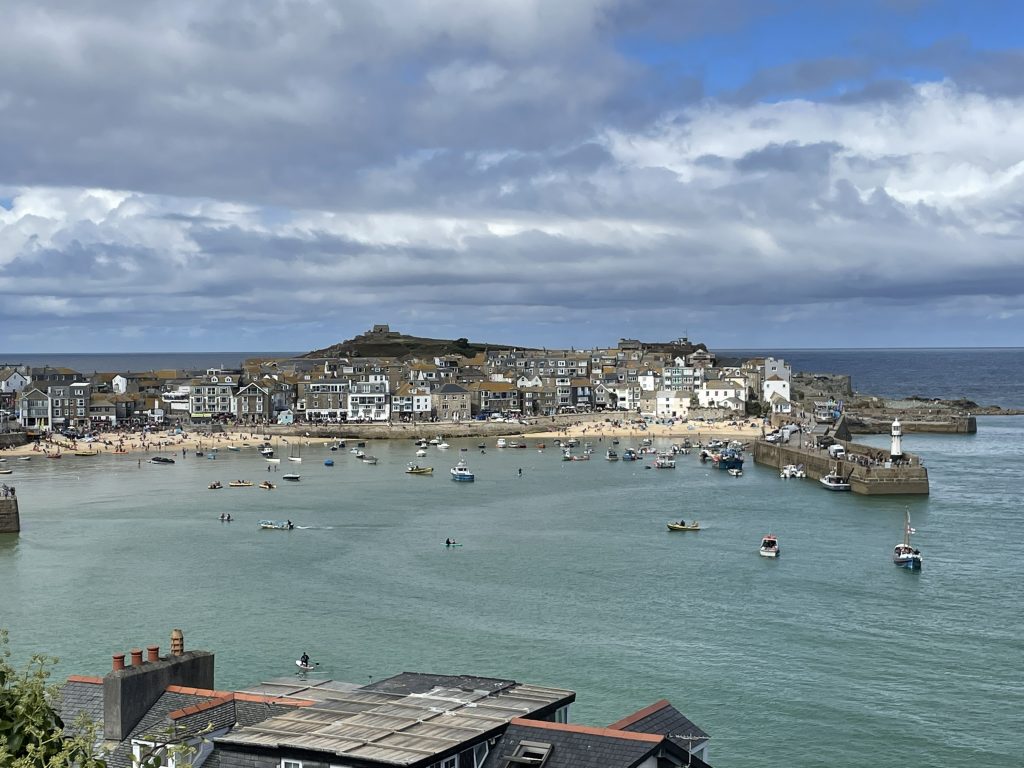 Am nächsten Tag fahren wir mit dem Land`s End Coaster, ein doppelstöckiger, oben offener Bus nach St. Ives und dieser Ort ist wirklich sehr schön. Malerisch am Wasser gelegen, mit engen Gassen und vielen netten Häuschen. Heute trauen wir uns zum ersten Mal an ein Lieblingsgericht der Engländer hier in Cornwall. Pasties! Wir finden beide, das sie für uns nicht so ganz lecker riechen, aber wir sehen täglich Hunderte die sie essen. Also ran! Oh man! Wir kauen beide mit langen Zähnen. Etwa eine Stunde später muss Petra ständig ein “Bäuerchen” machen und ich habe etwas Bauchweh. Die Pastie’s waren einfach zu fett. Im Wohnmobil angekommen, nehmen wir beide ne Omep, dann gehts wieder. Für uns beide bleibt es bei dieser einen Kostprobe, mit Pasties sind wir durch!