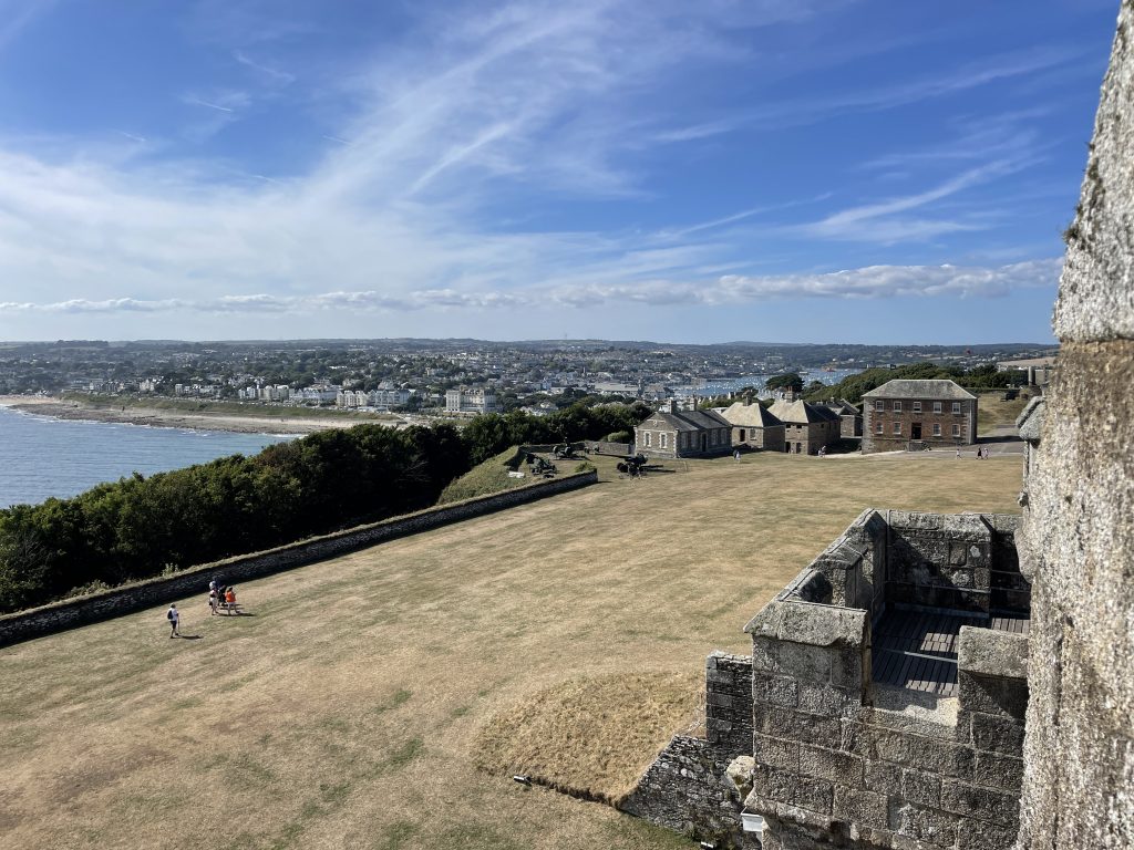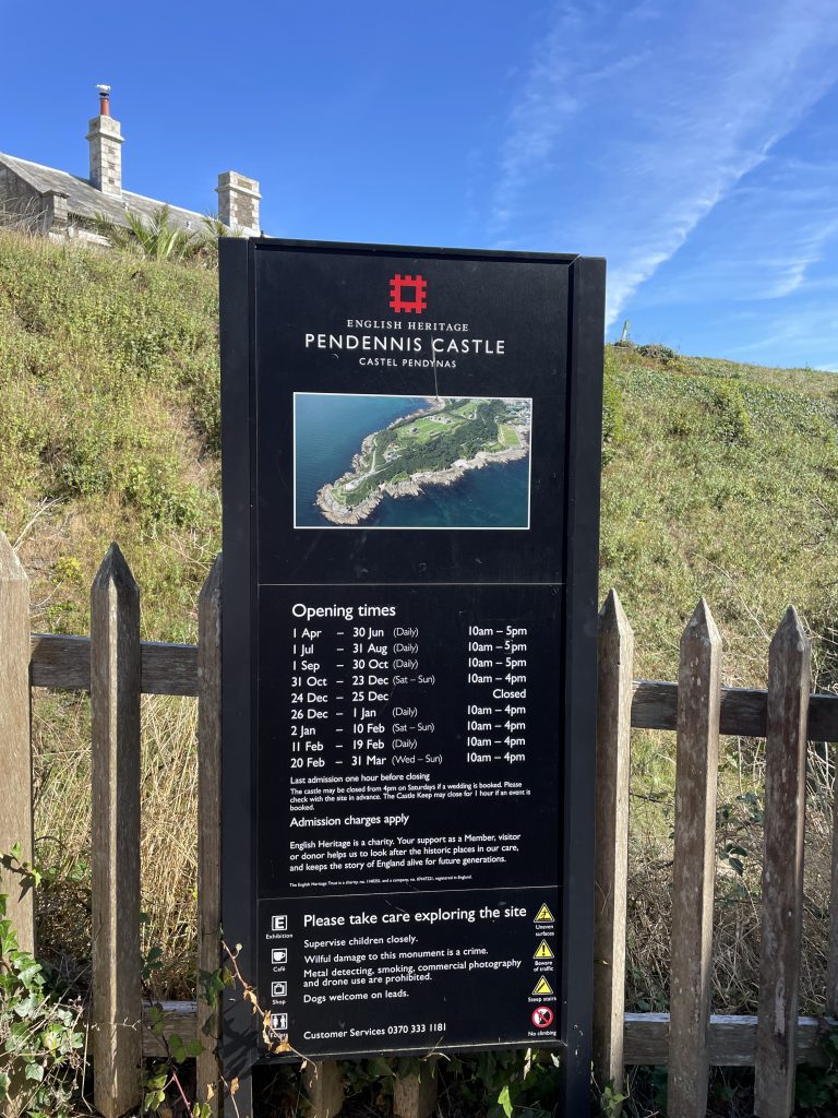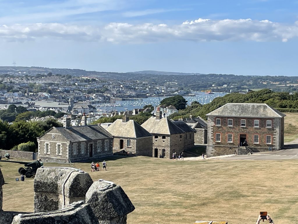 Am nächsten Tag nutzen wir erneut unser Ticket und fahren mal nach Falmouth. Dauert auch fast 2 Stunden für 50 km. Die Stadt selbst ist ganz nett – aber wir merken das wir verwöhnt sind und langsam wiederholen sich auch die Läden. Wir gönnen uns noch einen Cream Tea und gucken uns danach noch das Pendennis Castle an, das noch mit einem Fußmarsch steil nach oben verbunden ist. Laufen macht uns nicht mehr wirklich was aus und 10.000 Schritte bekommen wir mindestens jeden Tag zusammen.