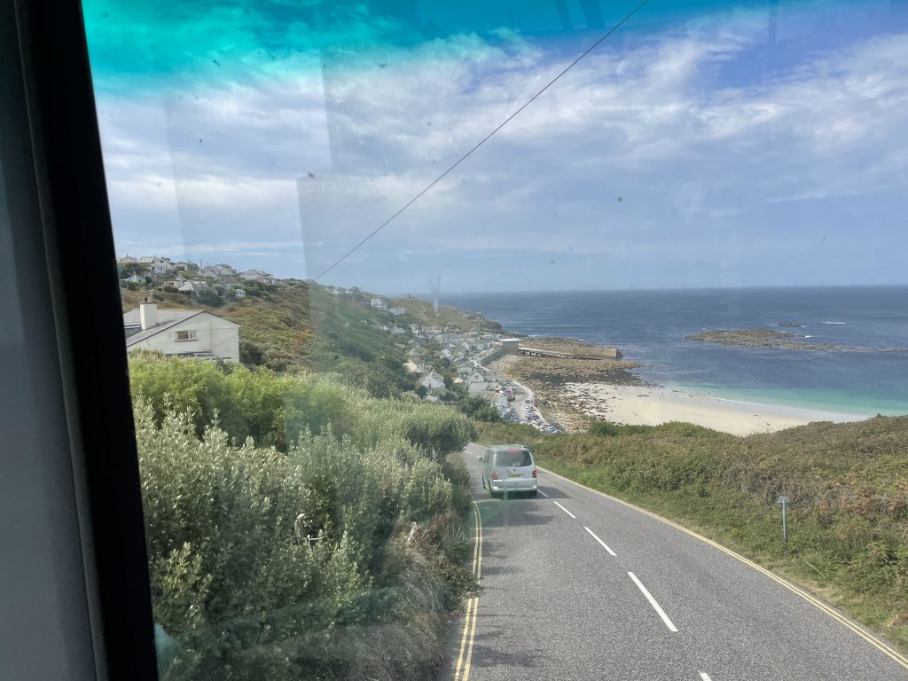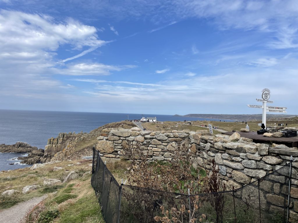Wir nutzen unser Wochenticket für den Bus voll aus und fahren im offenen Doppeldeckerbus über St. Ives nach Land’s End. Die Fahrt dauert fast 2 Stunden und ich freue mich immer diebisch darüber das ich die Strecke nicht fahren muss. Aber die Busfahrer haben es drauf. Manche bekreuzigen sich sogar an manchen Stellen und sind erleichtert, wenn es dann gepasst hat. Milimeterarbeit an Dächern oder Außenspiegel vorbei. Das ist eigentlich das Spannenste an der ganzen Fahrt. Das Wetter ist so lala – aber nicht kalt. Ich weiß gar nicht warum man immer an solche Stellen wie Land’s End reisen muss. Nur weil es das Ende von England ist? Die Küste sieht da ja nicht anders aus als an anderen Stellen. Aber solche Stellen sind immer Touristenmagneten. Geballte Busladungen, Autos und viele viele Menschen. Es sind auch mal wieder, mit Fotoapparat bewaffenete, Asiaten unterwegs. Wir steigen aus und haben eigentlich gleich die Nase voll. Hier müssen wir nicht bleiben, der nächste Bus ist unser und die Tour wird fortgesetzt. Einmal rum um den Zippel von Cornwall. War trotzdem ein schöner Ausflug.