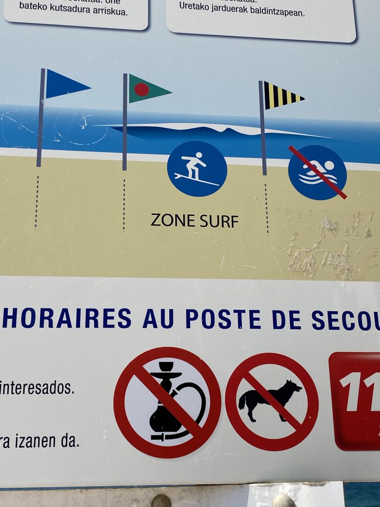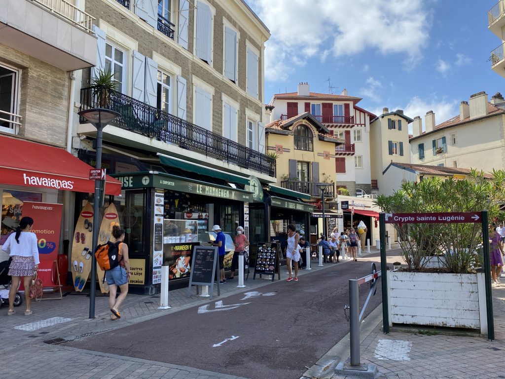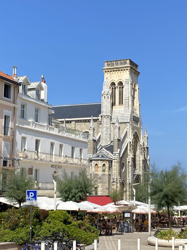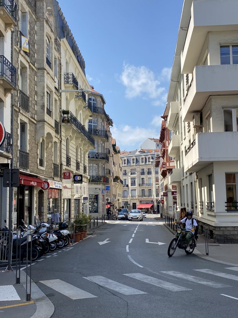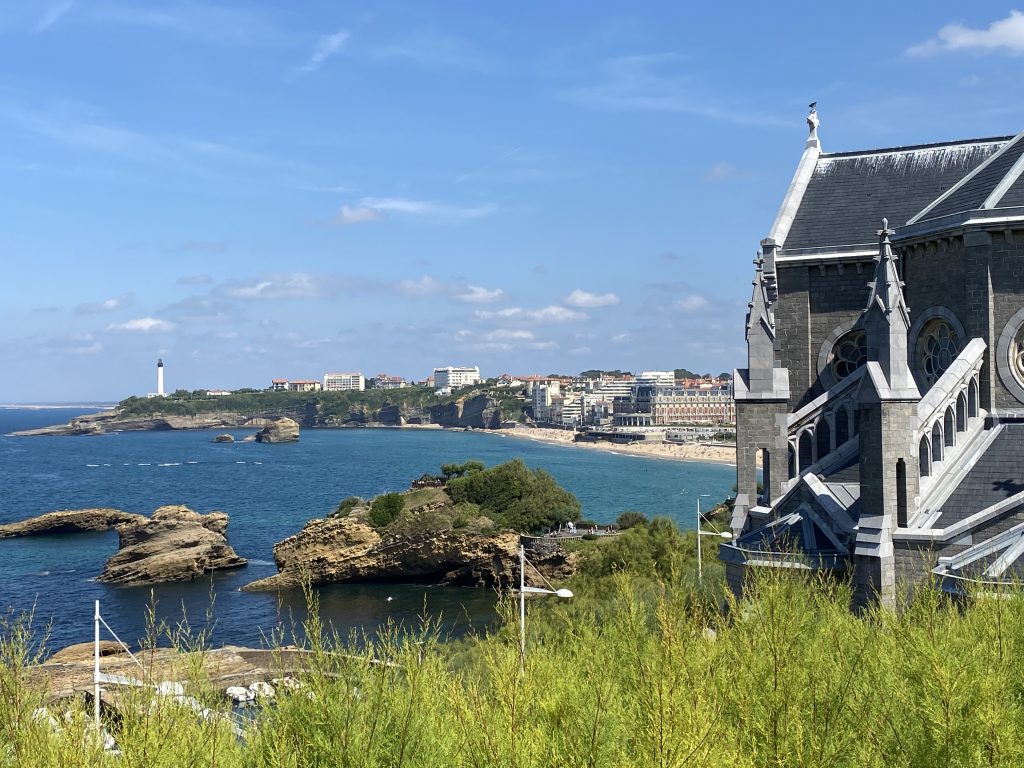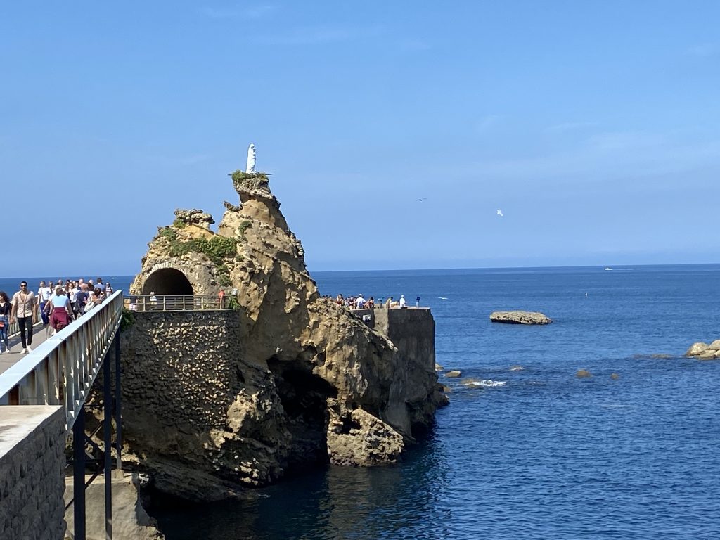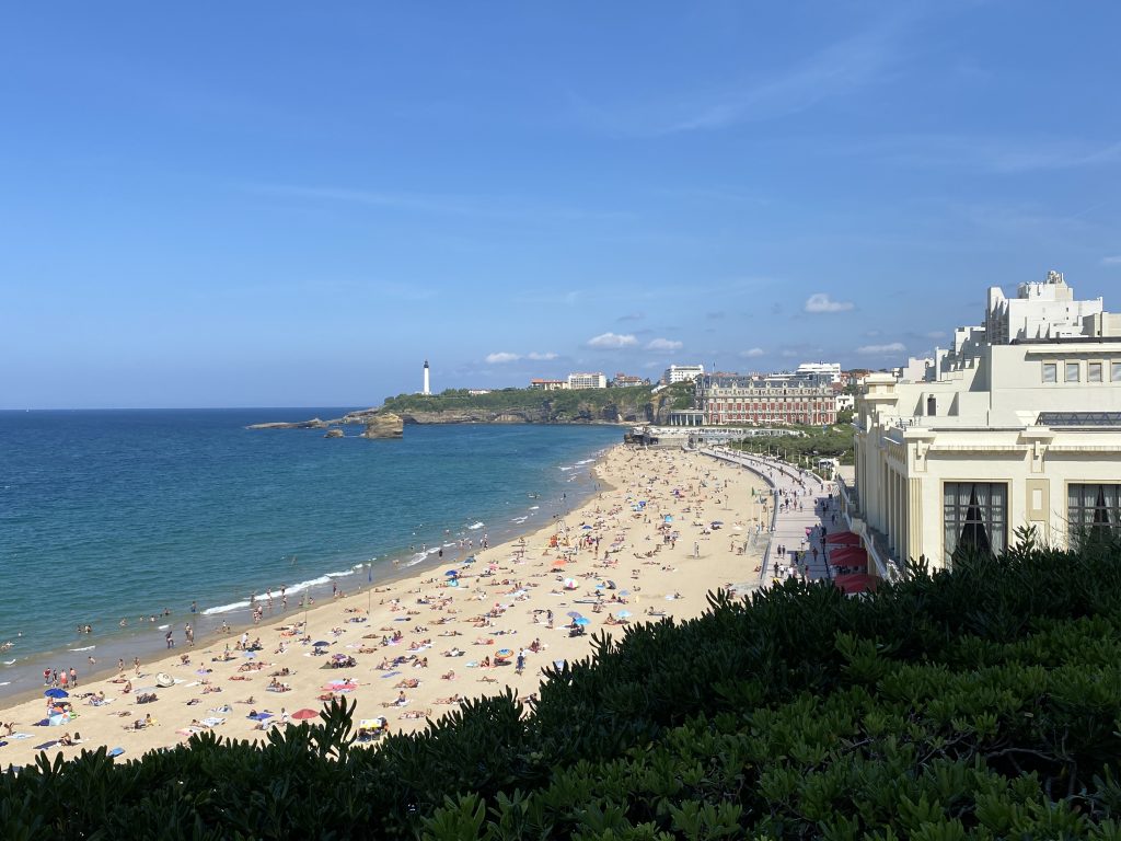 eine wunderschöne, alte, mondäne Stadt. Sie liegt direkt am Meer. Das Ende der Fussgängerzone ist der Anfang vom Strand. Hier könnte ich leben, aber wir wollen ja reisen und es gibt sicher noch viele andere schöne Städte. Deshalb haben wir uns Biarritz mit dem Rad und zu Fuss an einem Tag angesehen. Es ist auch immer noch so heiss, dass wir bei jeder Bewegung schwitzen und in der Stadt ist es noch wärmer, als am Wasser.